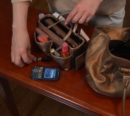Have you ever reached into your bag and realized your wallet or cell phone is in the bag you used yesterday? Help prevent just such a snafu with this set of bag organizers, which can be transferred from one bag to the next. They have plenty of zippered and open sections to hold all of your essentials, and lift out quickly via sturdy handles. From Lori Greiner.
