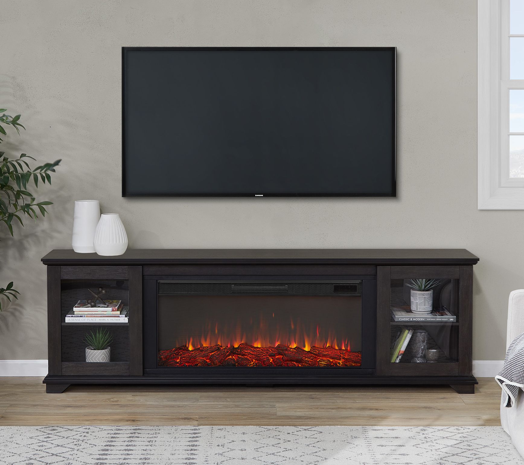Enjoy the beauty of a fireplace all year long with the Benjamin landscape media electric fireplace. Choose between six lifelike flame colors, as well as both heated and heatless settings, for a cozy environment no matter the season. From Real Flame.