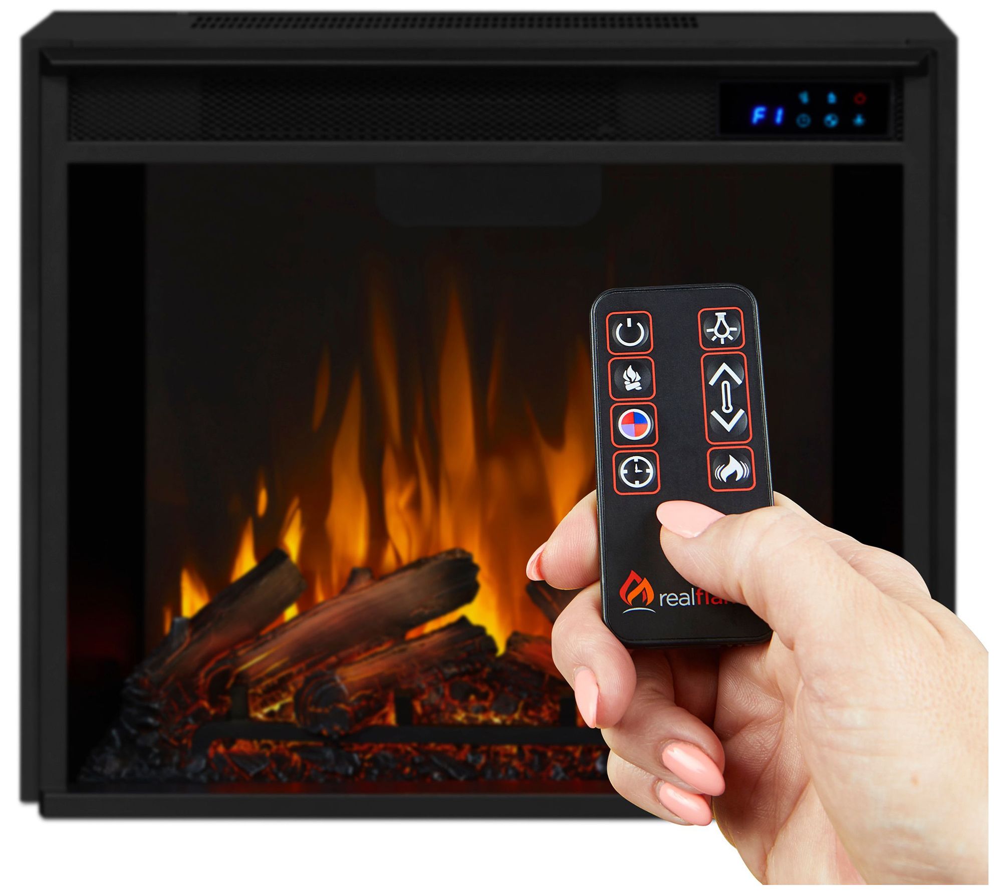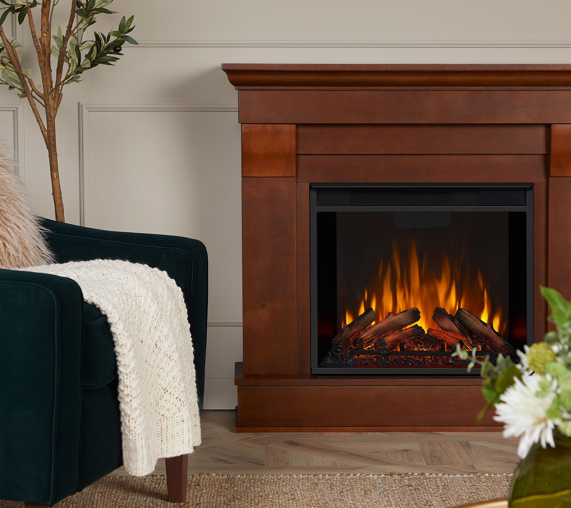Room without a flue? Plug in this elegant and compact fireplace in spaces from secondary bedrooms to the study. A programmable thermostat, timer, and five brightness settings make for effortless operation. From Real Flame.