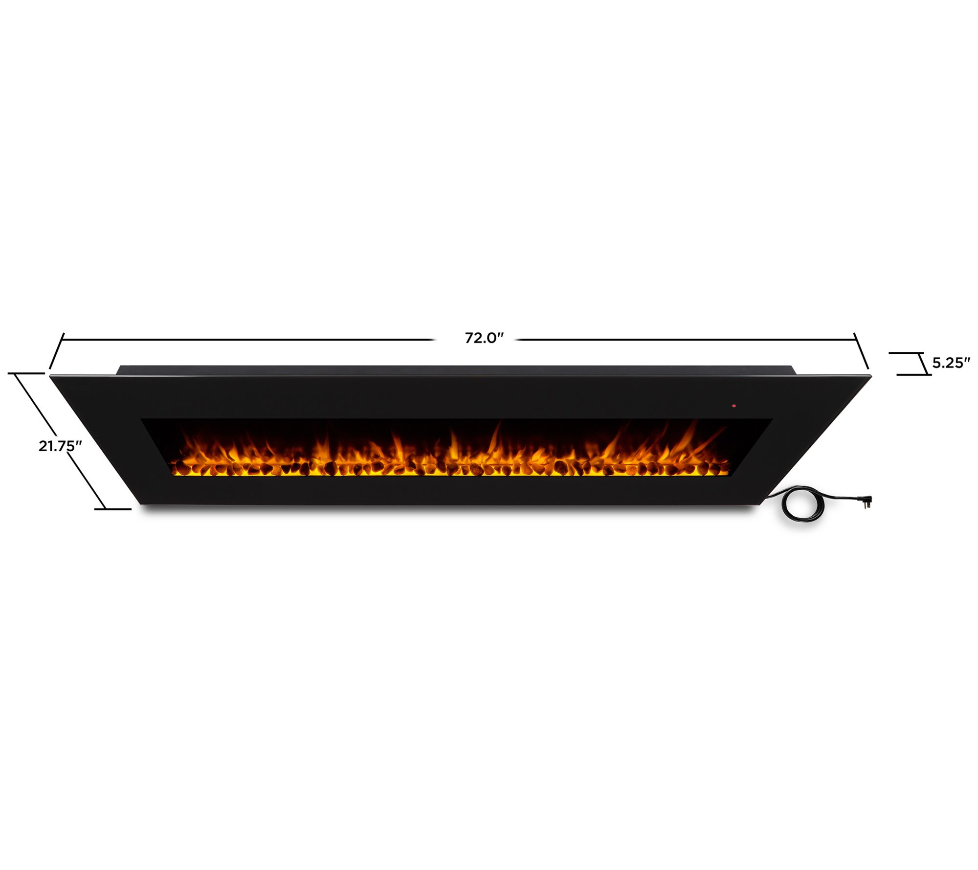 • Measures 72"L x 5.25"W x 21.75"H; weighs 83 lbs; Cord 6'L; hang on wall at minimum height of 12" and at a minimum clearance of 39" from top of unit to ceiling
