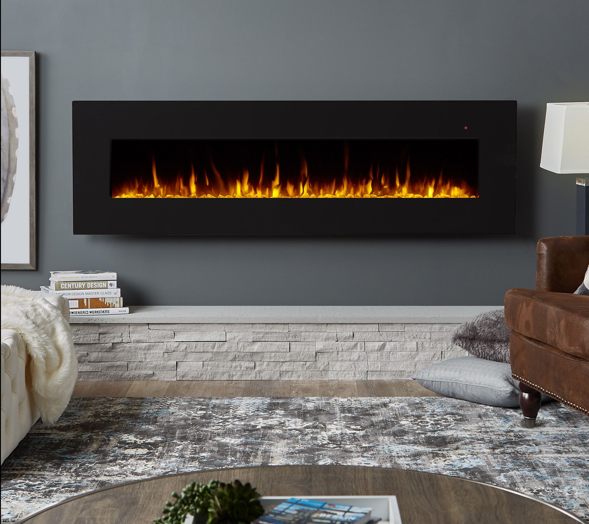 • Includes fireplace, wall mount, and remote with CR2025 battery