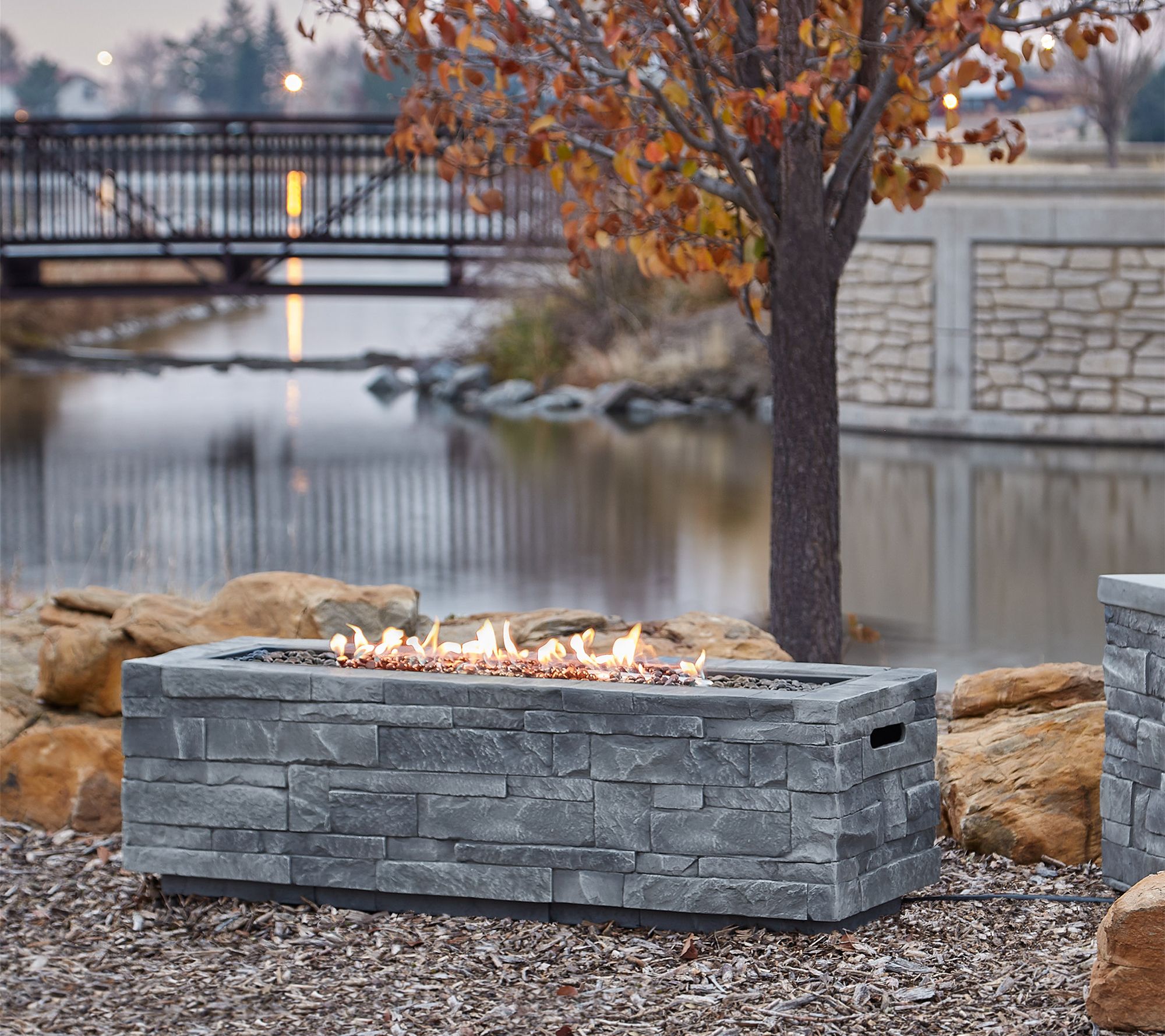 Real Flame Gray Ledgestone Rectangle Fire Table