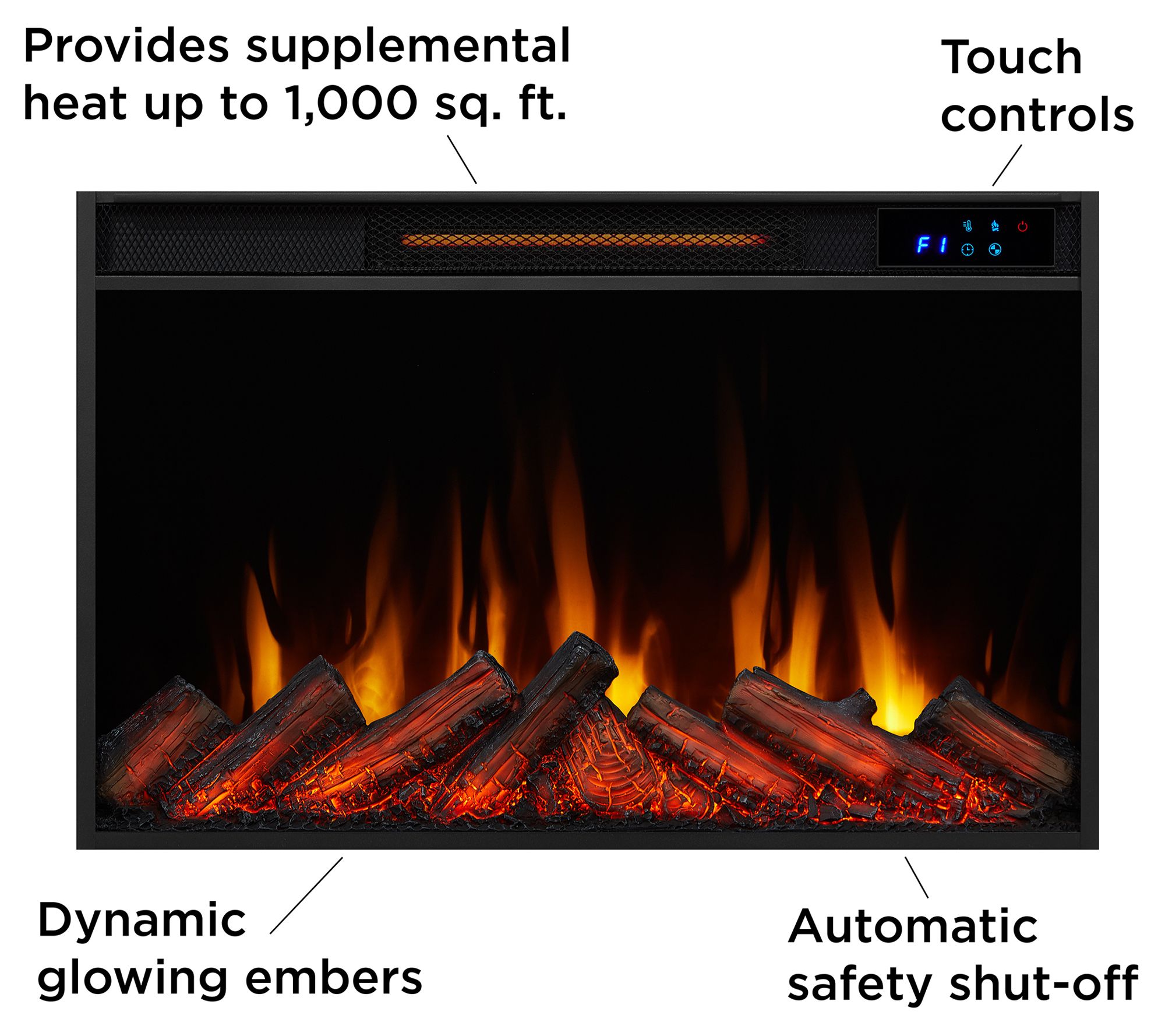 • Six flame colors; five flame brightness levels