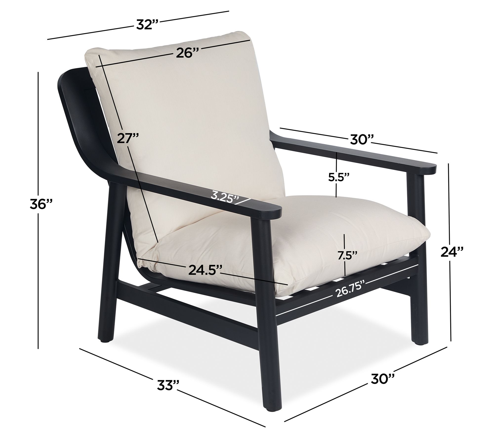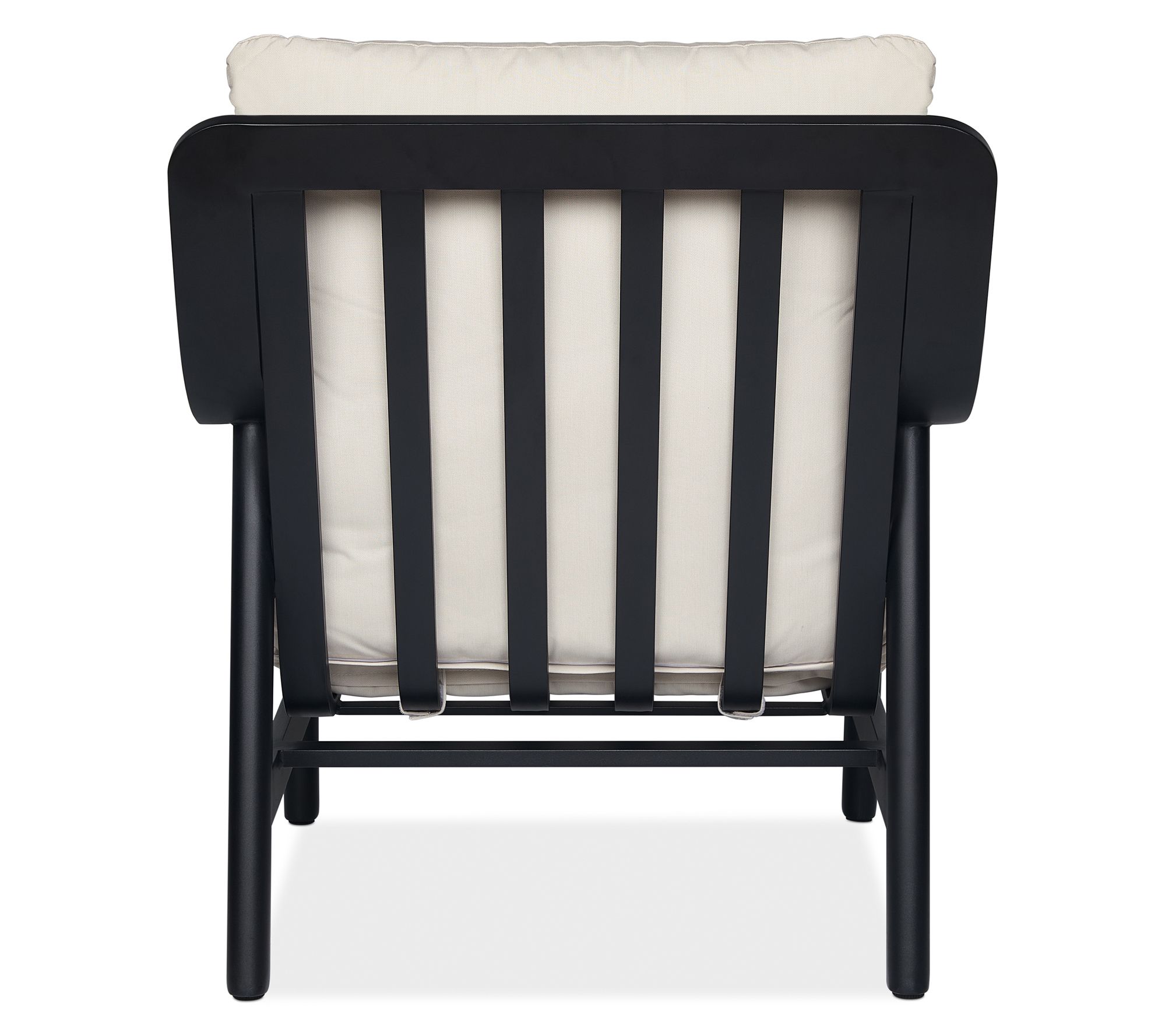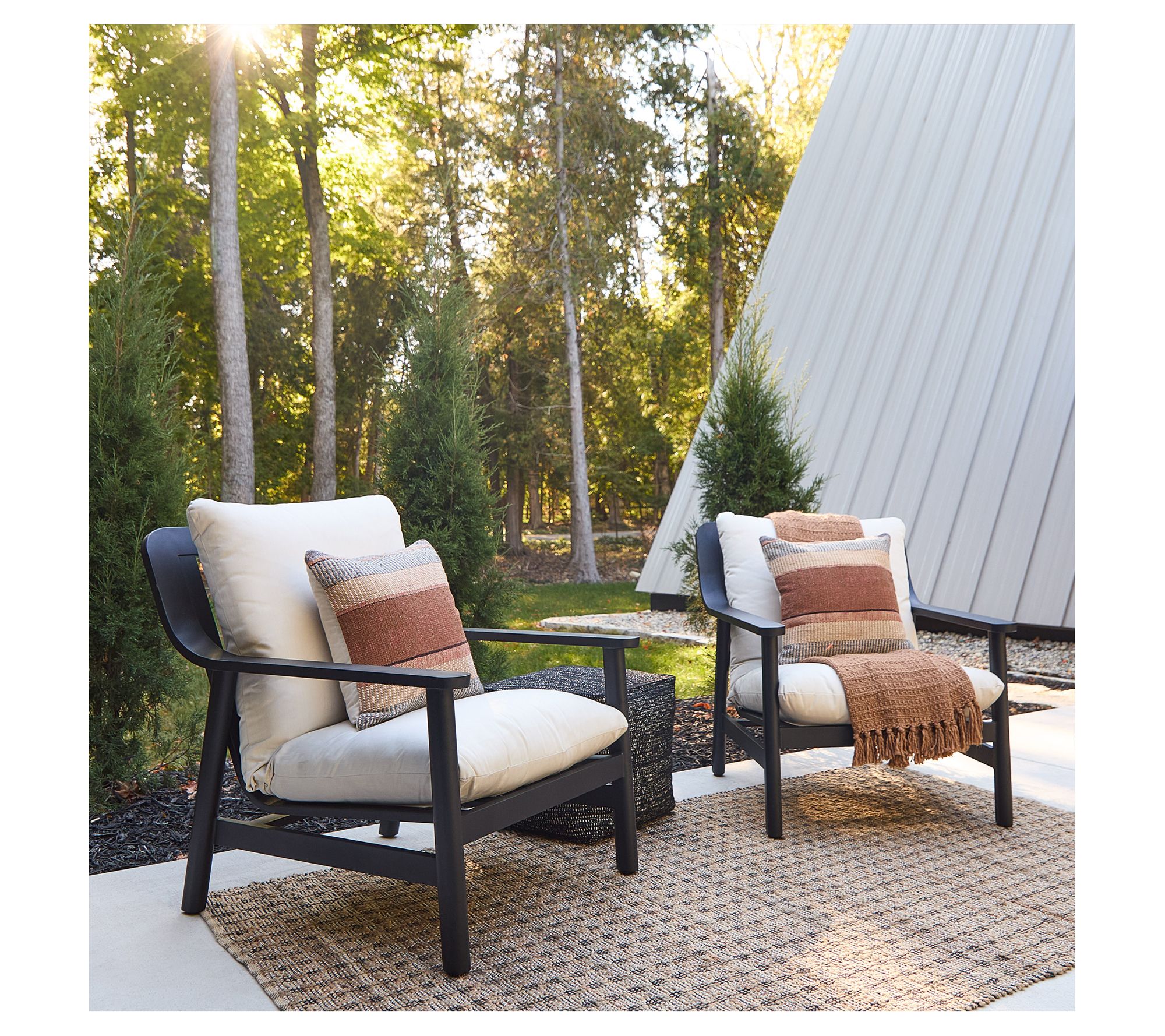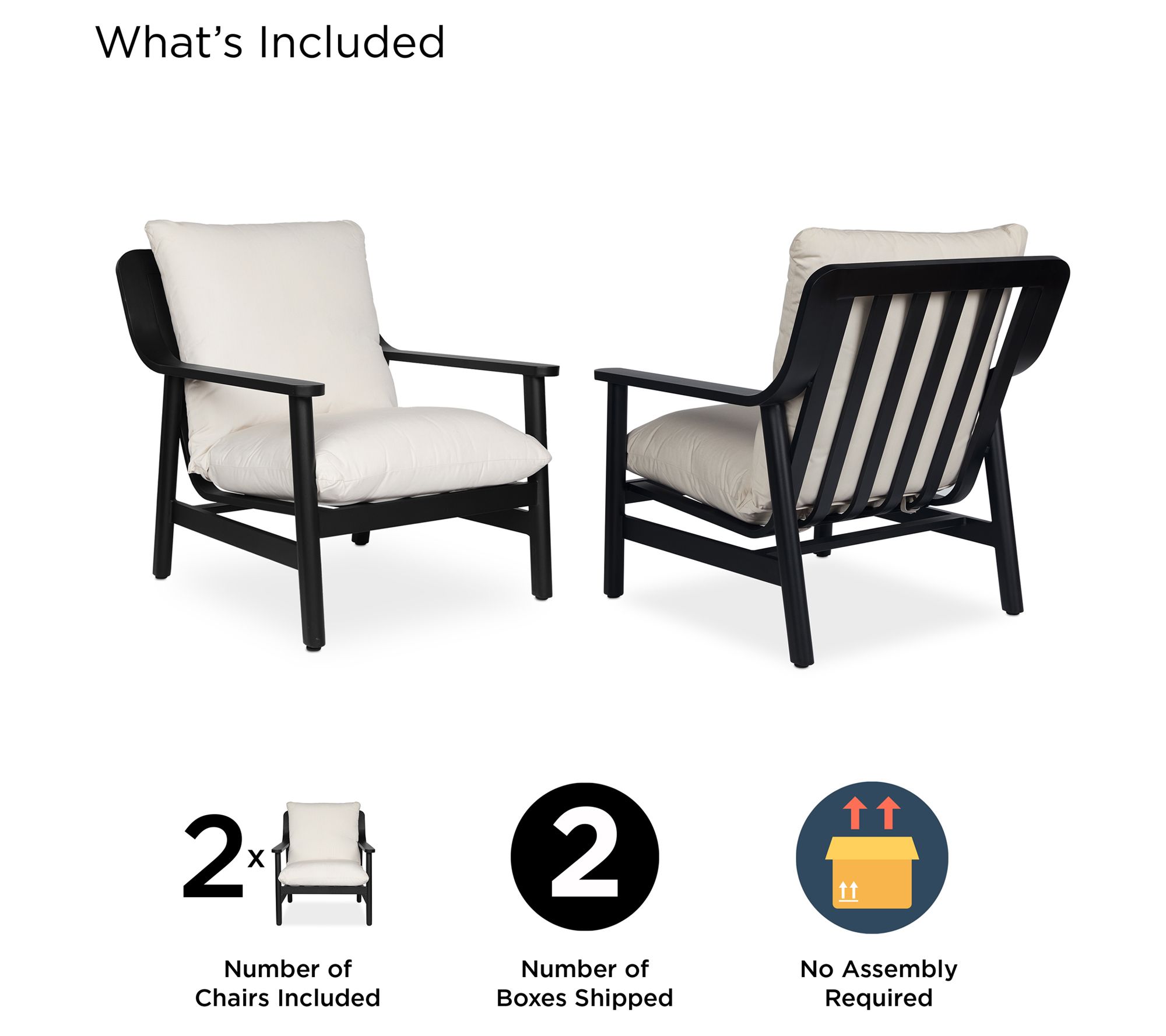 Sit back and relax in the deep, comfortable seating of the Pomona outdoor chair set. The black metal frame offers durability with its weather and sun resistance, while the premium Sunbrella cushions provide an inviting touch. Enjoy hassle-free maintenance with removable covers and secure your seating even on windy days with hook and loop fasteners. From Real Flame Company.