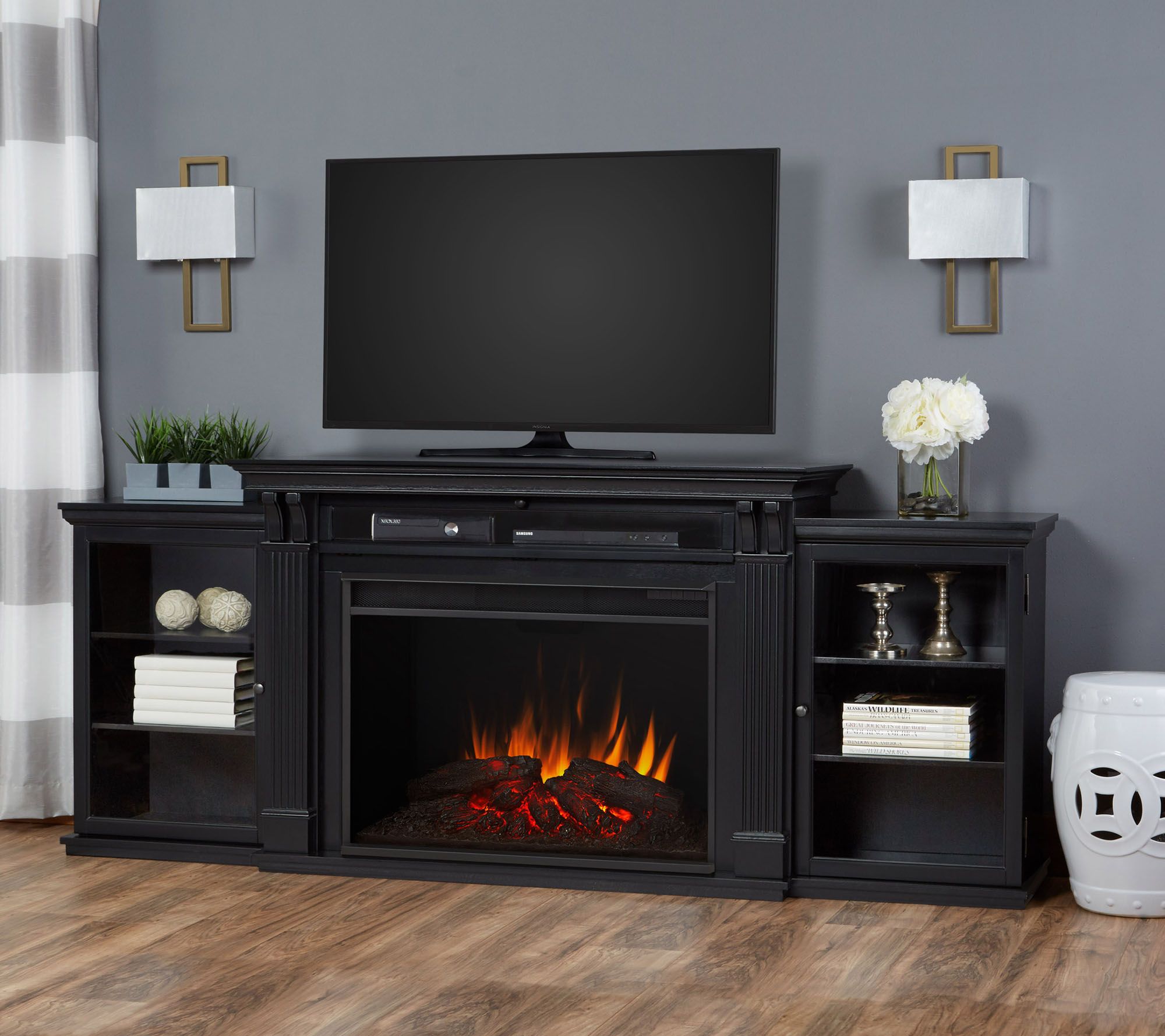 Bring a whole new dimension to your living room with Real Flame's Tracey grand electric fireplace. You'll be able to remotely control the temperature, timer, and brightness of a beautifully vivid LED flame. It also has adjustable shelving behind glass doors, making it the ideal entertainment center. From Real Flame.