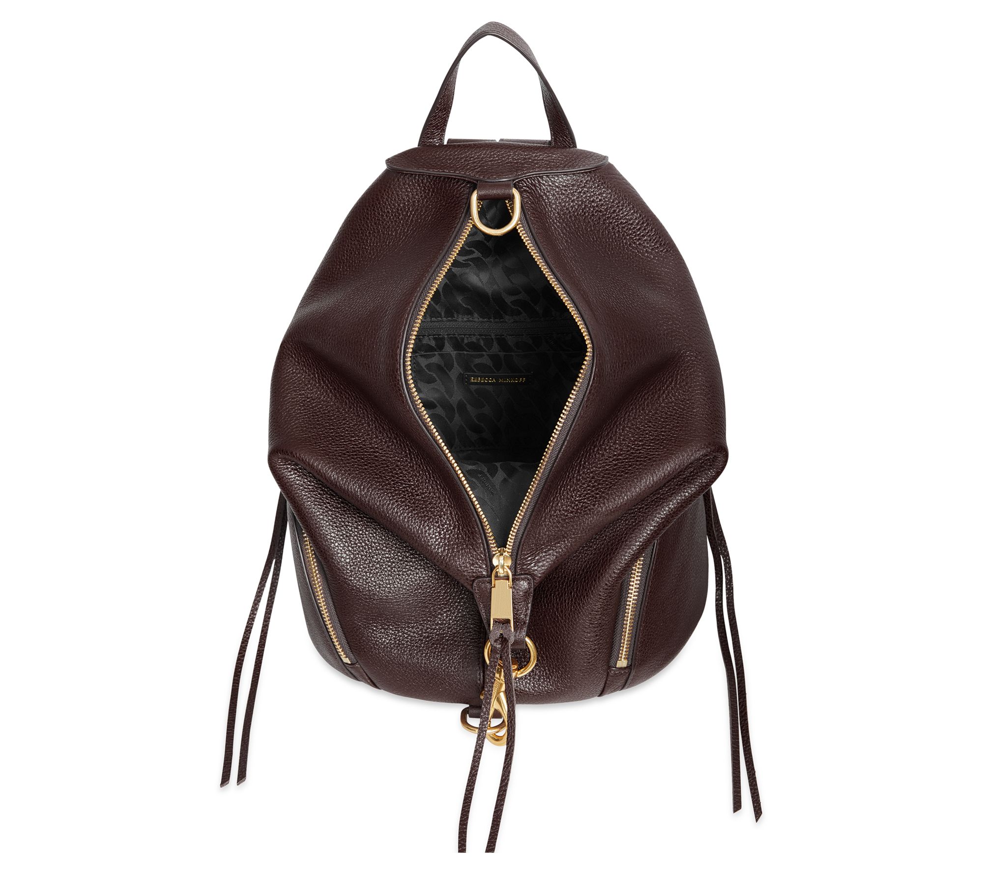Elevate your everyday look with the Rebecca Minkoff Julian Leather Backpack, a perfect blend of functionality and chic style. Its premium supple leather, adorned with polished signature dog clip hardware in antique brass, offers ample storage with exterior and interior zip pockets. Adjustable straps and a convenient top handle ensure easy transitioning, making this backpack a versatile choice for any outing. From Rebecca Minkoff.