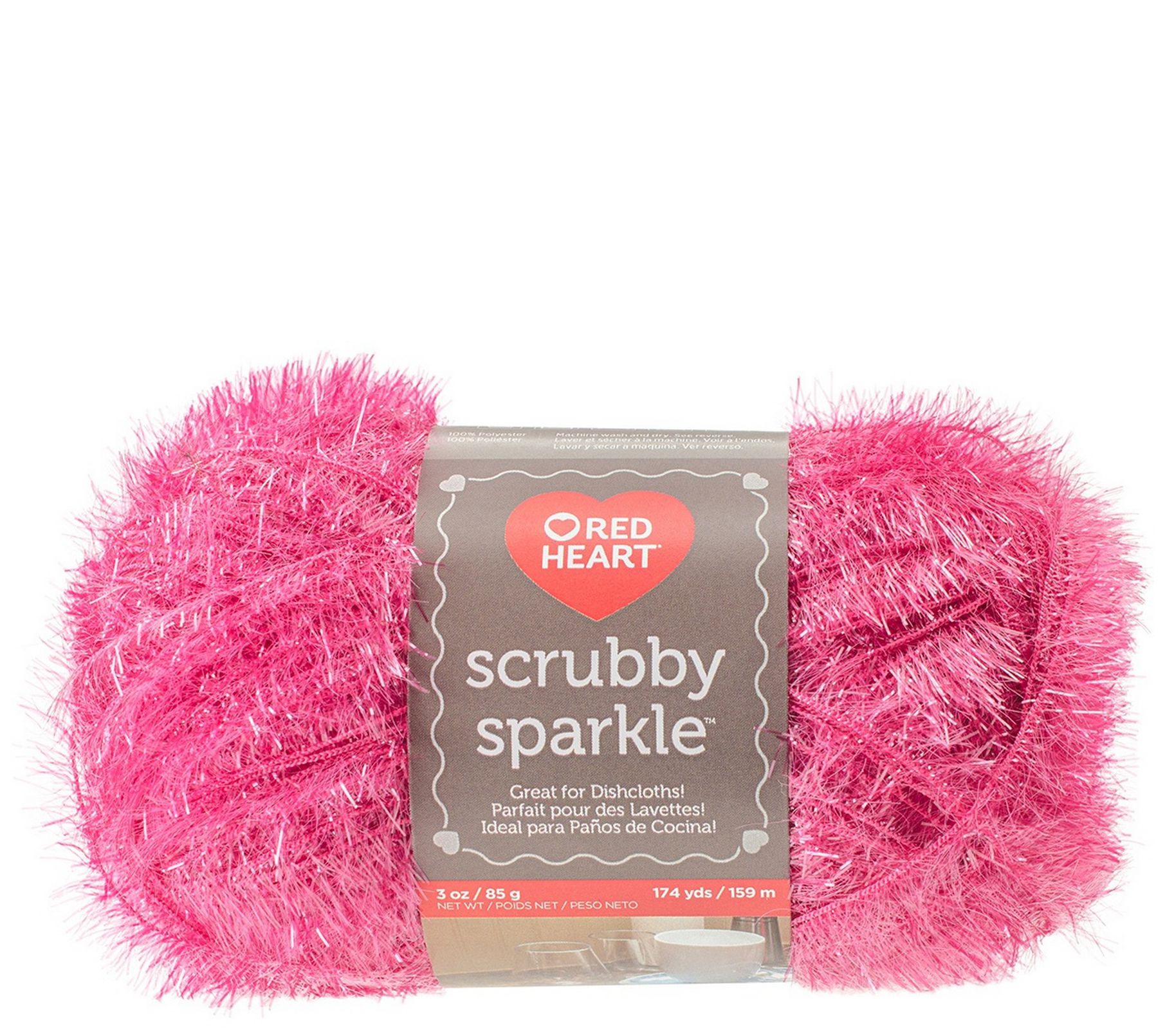 Brightly colored and uniquely textured, this sparkly yarn is perfect for creating pan scrubbies and other craft items. From Red Heart.