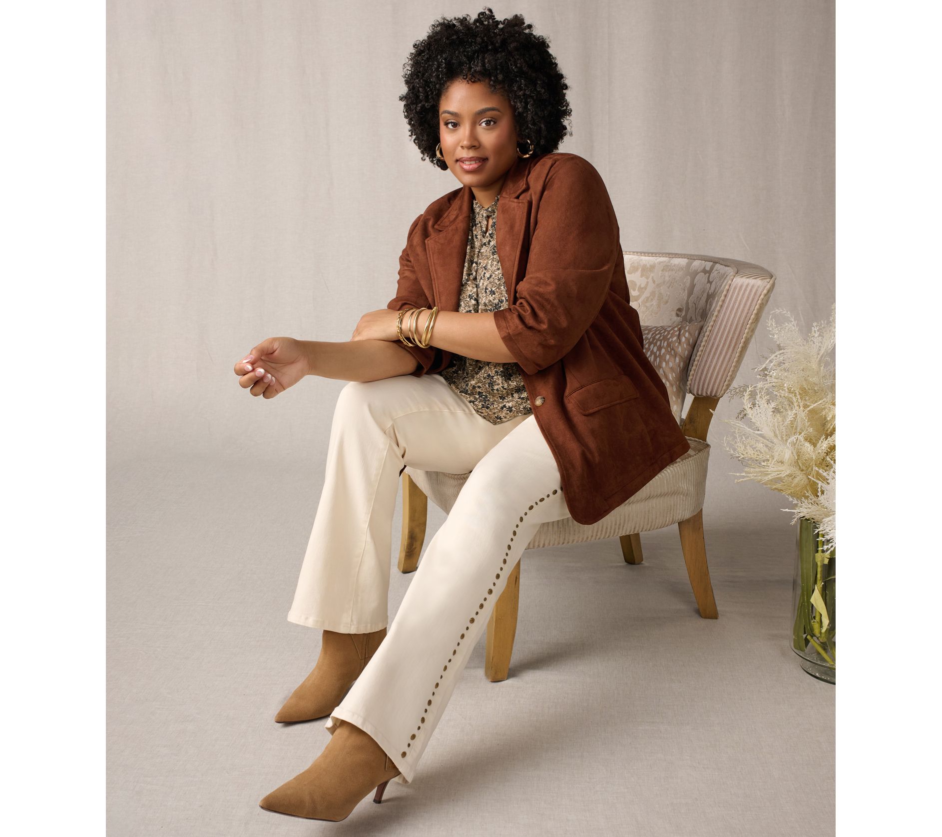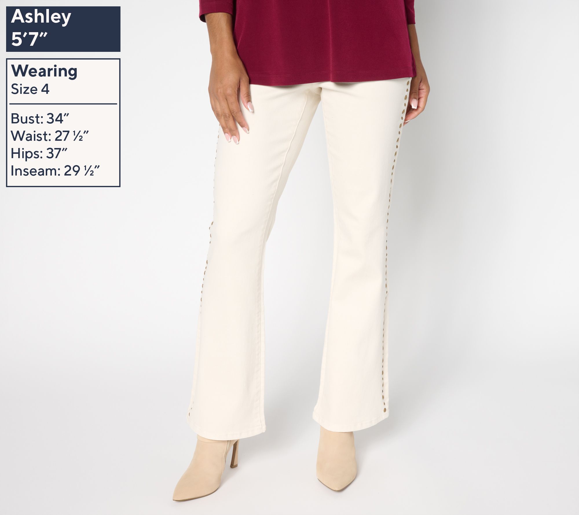 For weekday errands or spontaneous gatherings, these stylish jeans add a touch of ease to your outfit with their laid-back silhouette and stud details. The boot-cut leg and flattering fit provide everyday practicality and charm as you go about your day. From Ree by The Pioneer Woman.