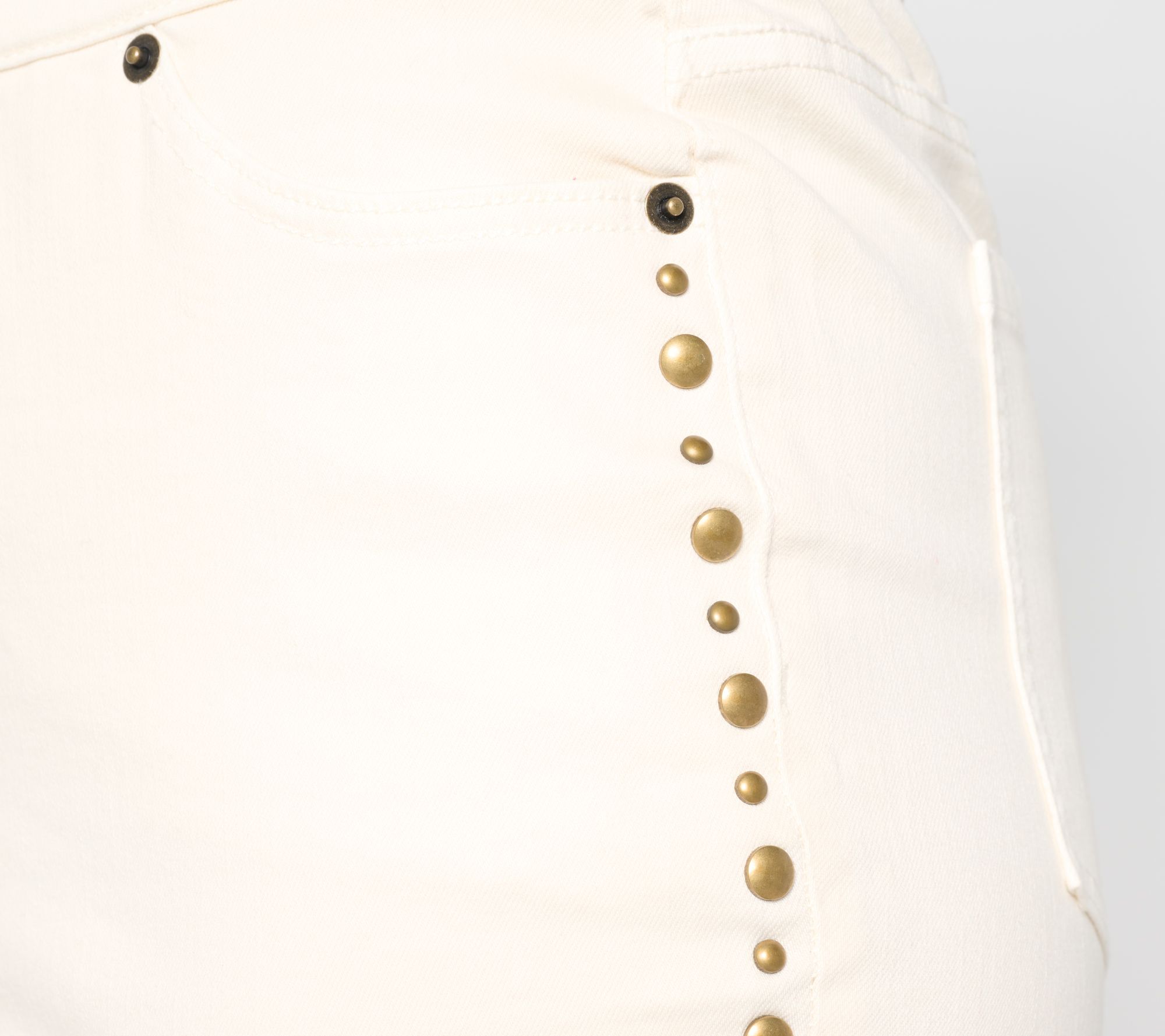 Features: stud details, coin pocket at wearer's right scoop pocket, bartacks at top corners, back patch pockets with bartacks at top corners