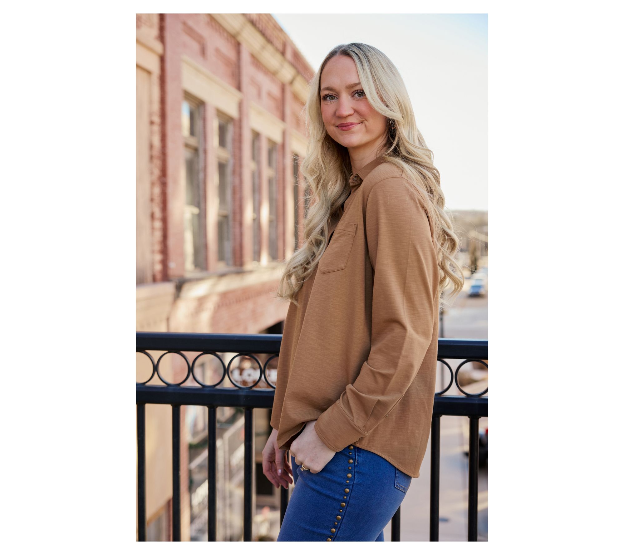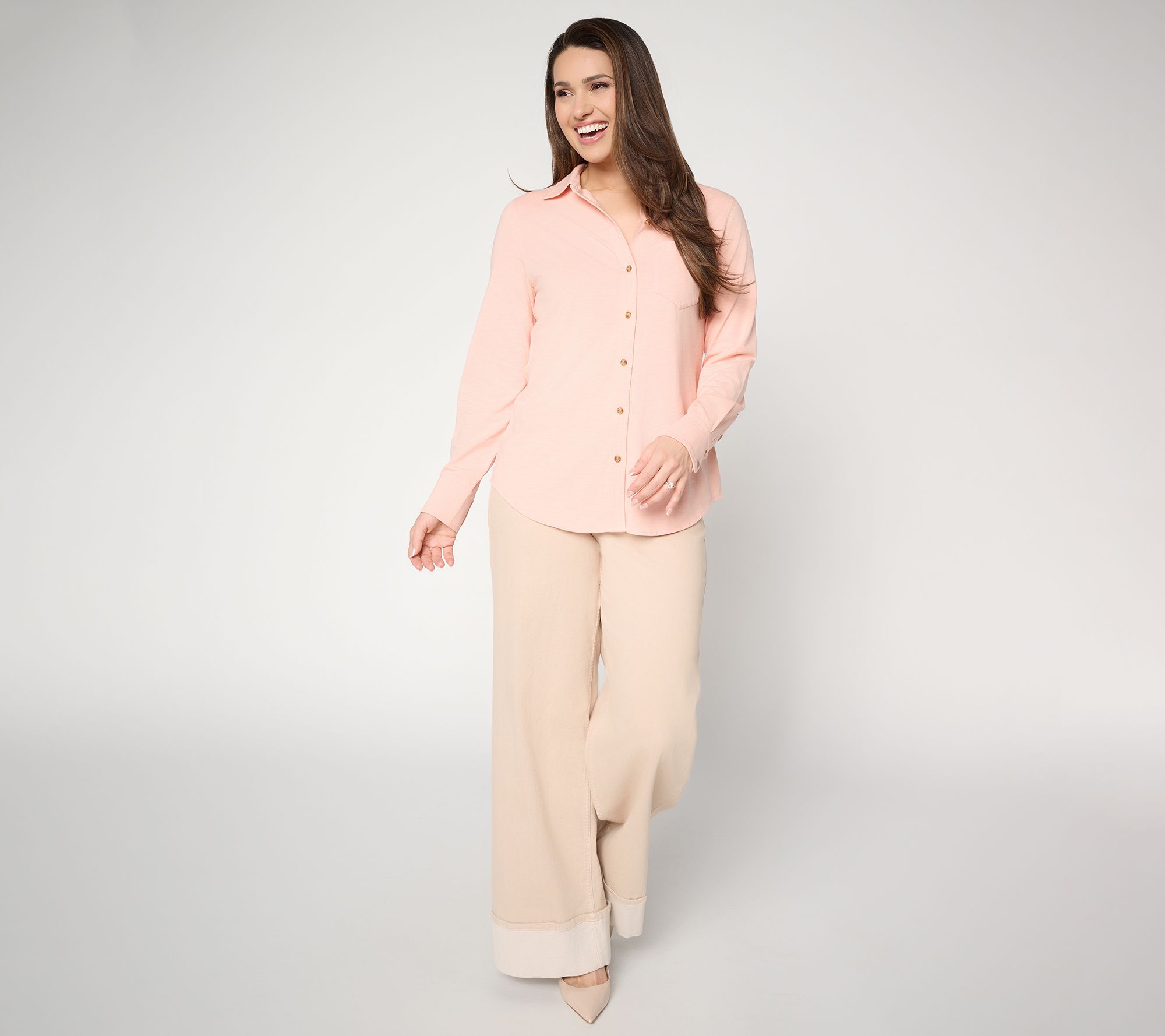 Weekend brunch with friends or a casual day at work is effortlessly stylish with this slub knit top. Built with a stand collar and single chest pocket, its button-down front and shirttail hem to give your everyday look a laid-back yet polished update. From Ree by the Pioneer Woman.