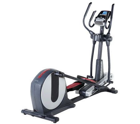 Glide your way to fitness with the 710 elliptical. A comfortable 20" to 22" power adjustable stride and oversized ZigTech cushioned pedals make for a smooth stride. Monitor your progress on a 5" diagonal backlit display as the Coolaire workout fan keeps you comfortable. Silent magnetic resistance and 22 preset workout apps let you personalize a workout that's perfect for your needs. From Reebok.