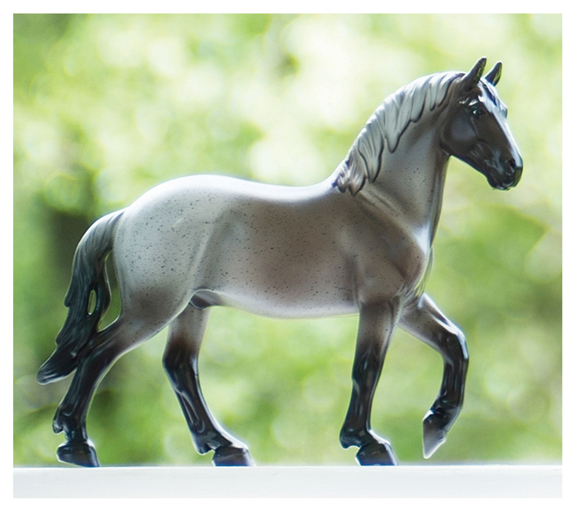 Put your equestrian fandom on display with this model figurine depicting a blue roan horse in an iconic pose. From Reeves International, Inc.