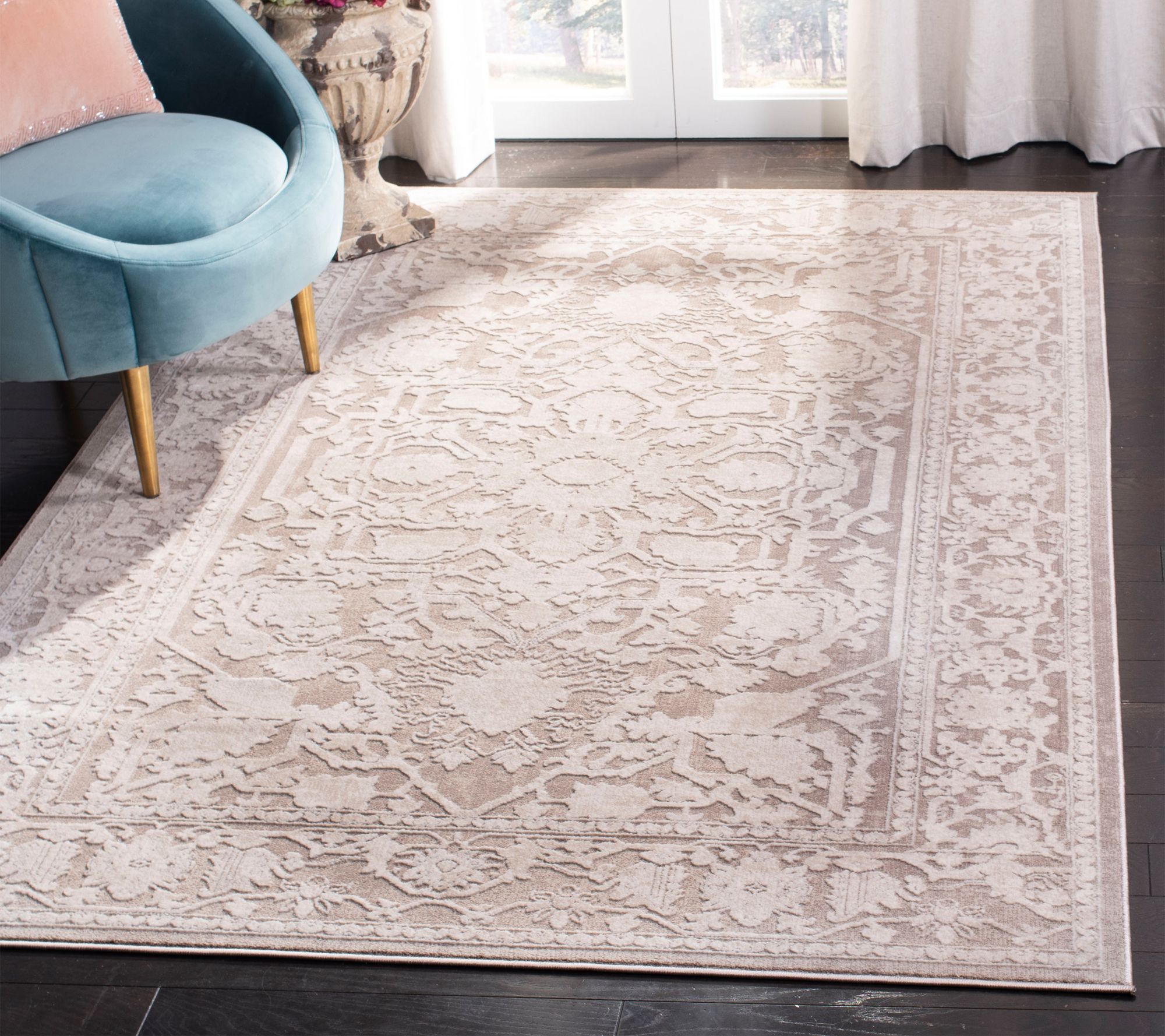 Revive any drab decor or tired space with this remarkable rug, designed with an intricate floral motif for a soft and subtle sophistication. From the Reflection Collection.