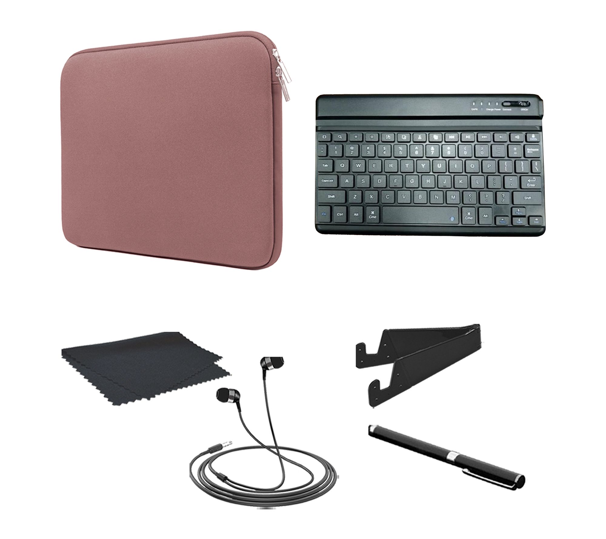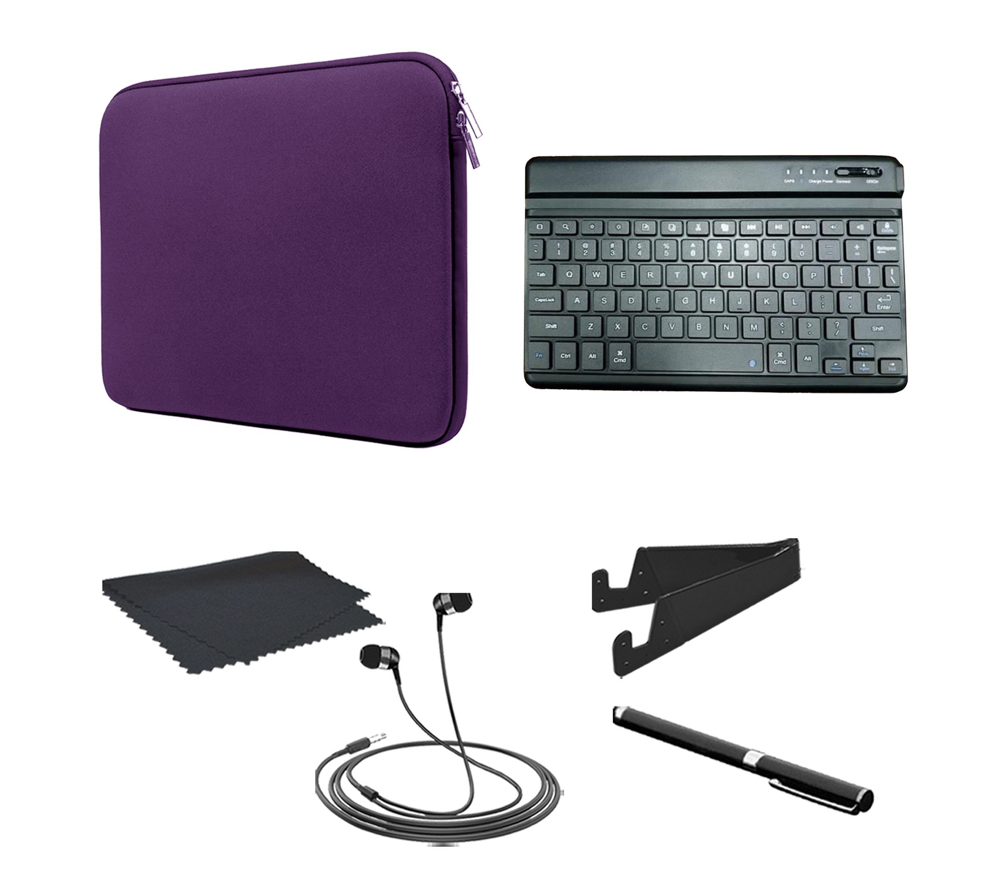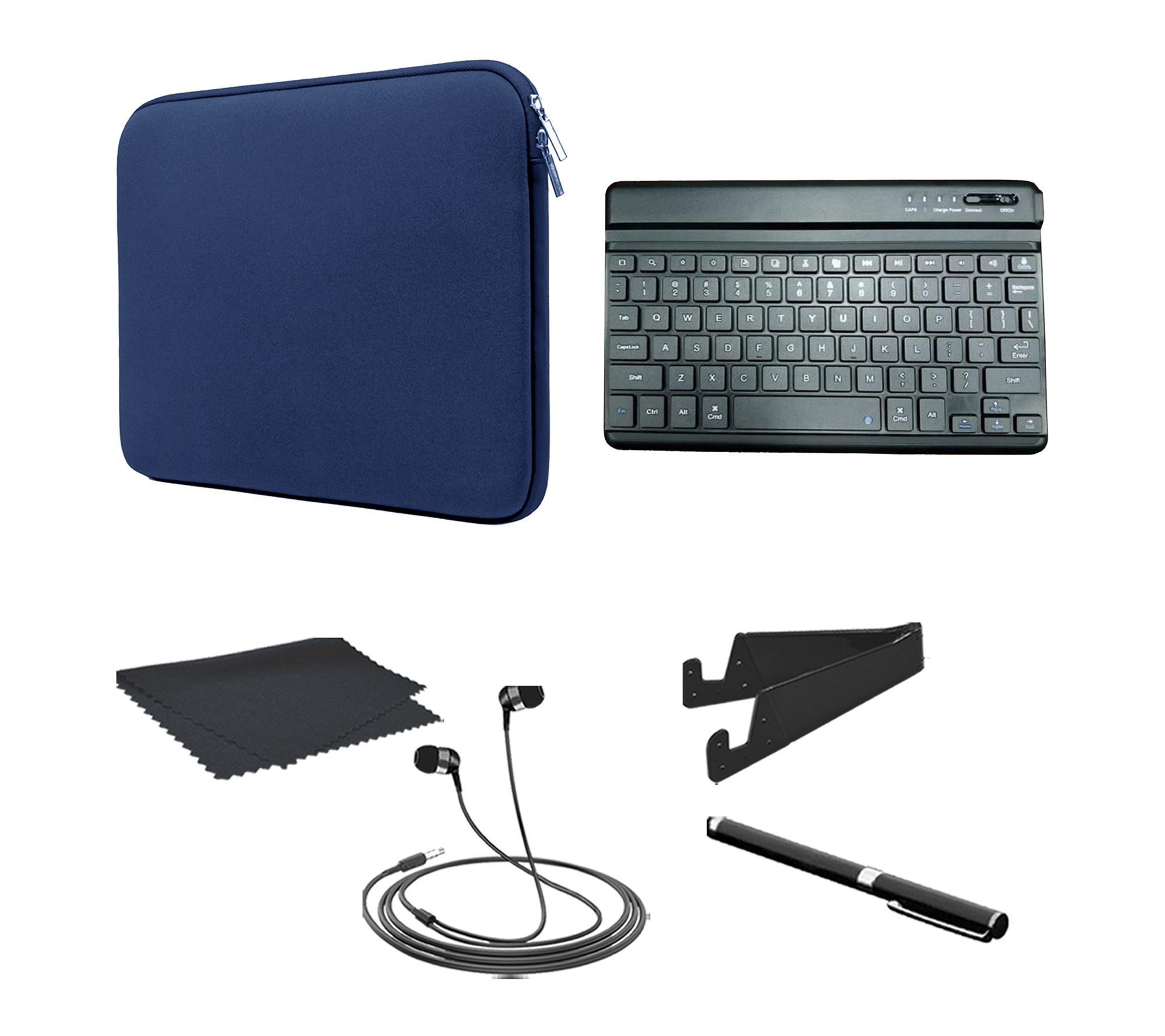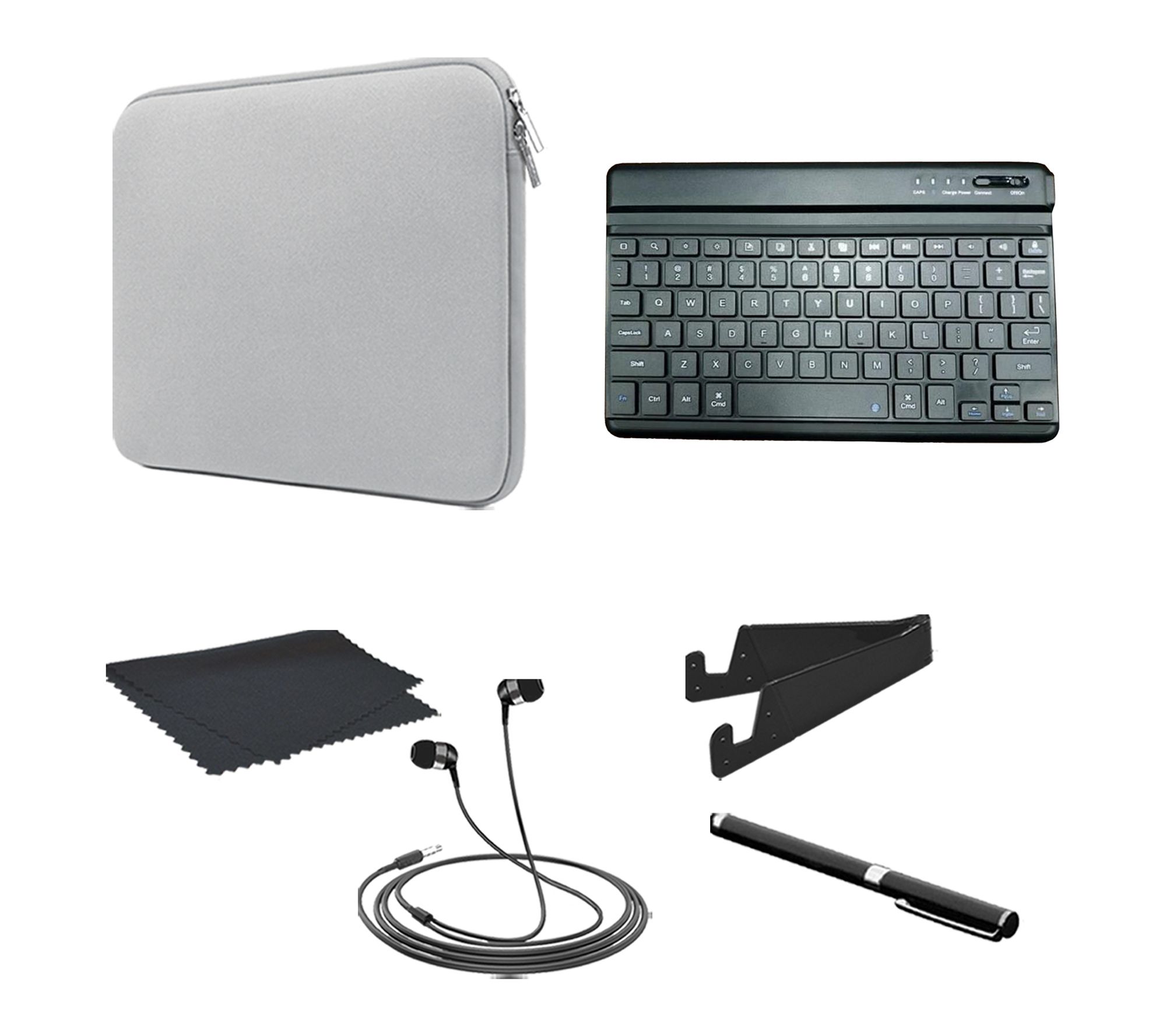 Includes refurbished iPad Pro, USB-C charge cable (1 meter), and 18W USB-C power adapter; carry case, wireless keyboard, stand, stylus, cleaning cloth, and wired earbuds