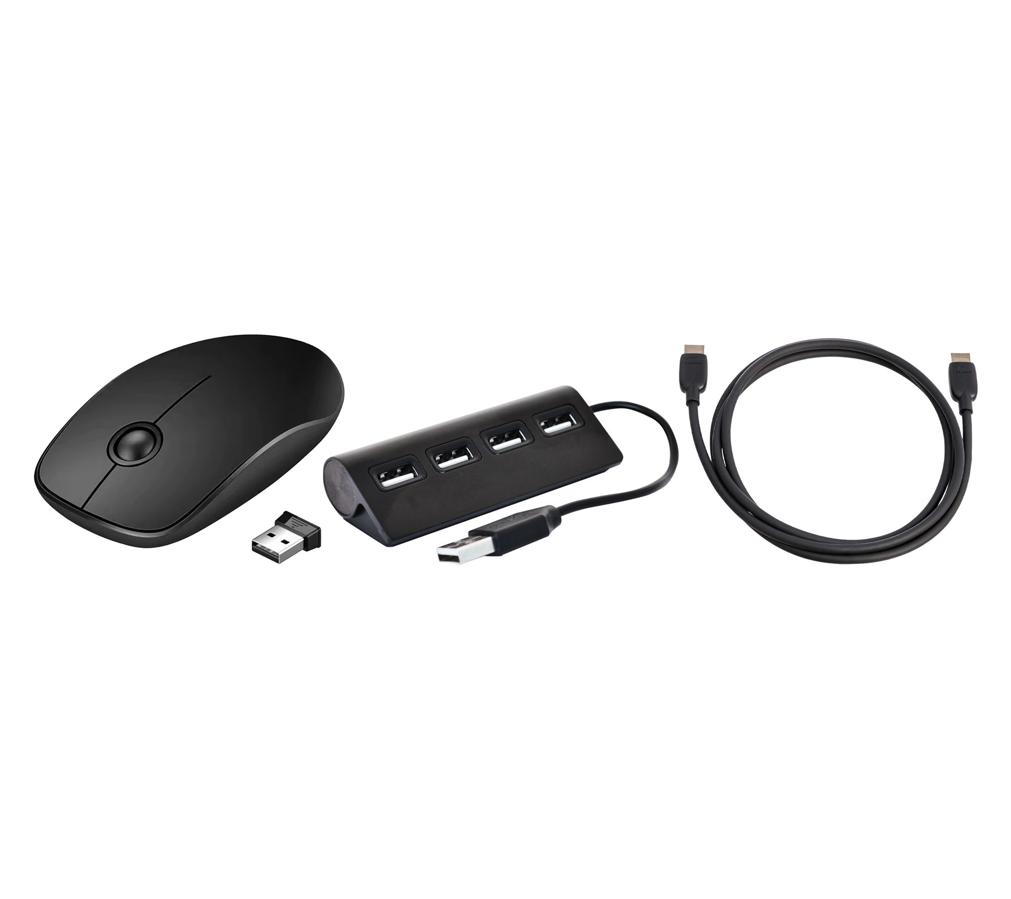 Includes refurbished Mac mini, power cord, wireless mouse, 4-Port USB-Hub, and USB-C to USB-C cable