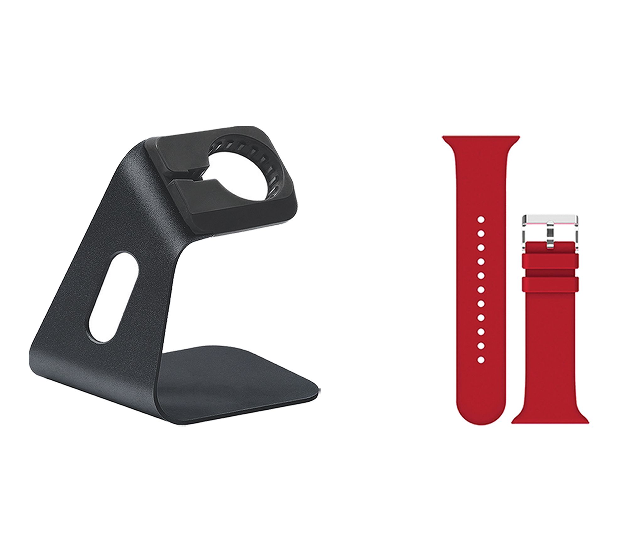 Includes refurbished Apple Watch Series 8 41mm with medium/large band and magnetic charging cable; charging stand and silicone band