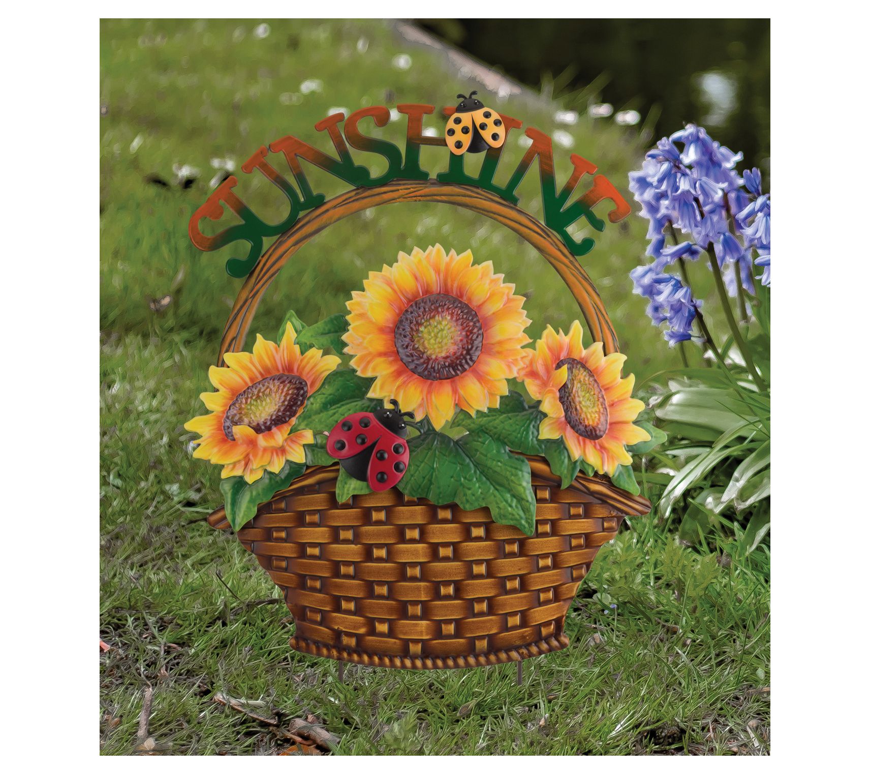 Brighten up your garden with this cheerful flower stake designed in a country style basket. Adorned with colorful flowers and bugs, along with a stamped woven basket pattern, it brings a warm, inviting message to your outdoor space. From Regal Art & Gift.