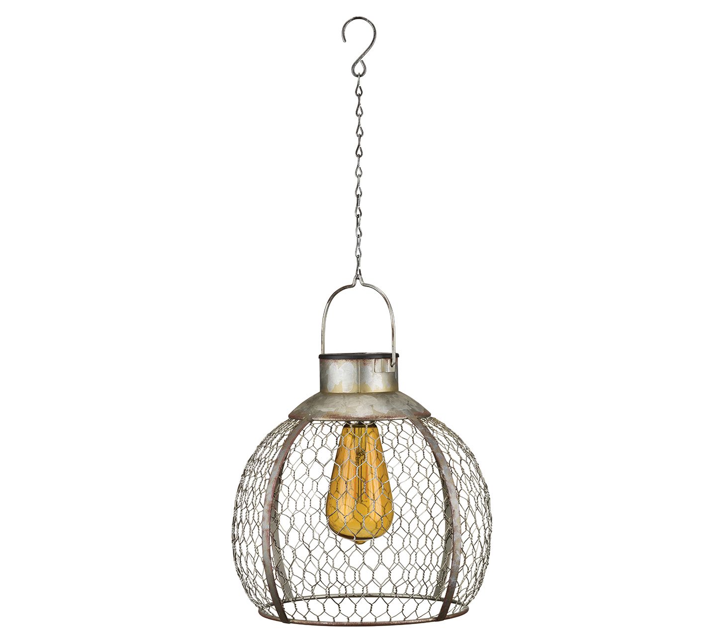 Add a warm glow and a touch of rustic elegance to your garden or patio with this solar-powered hanging lantern, featuring a vintage-inspired LED Edison bulb surrounded by a charming metal cage. From Regal Art & Gift.