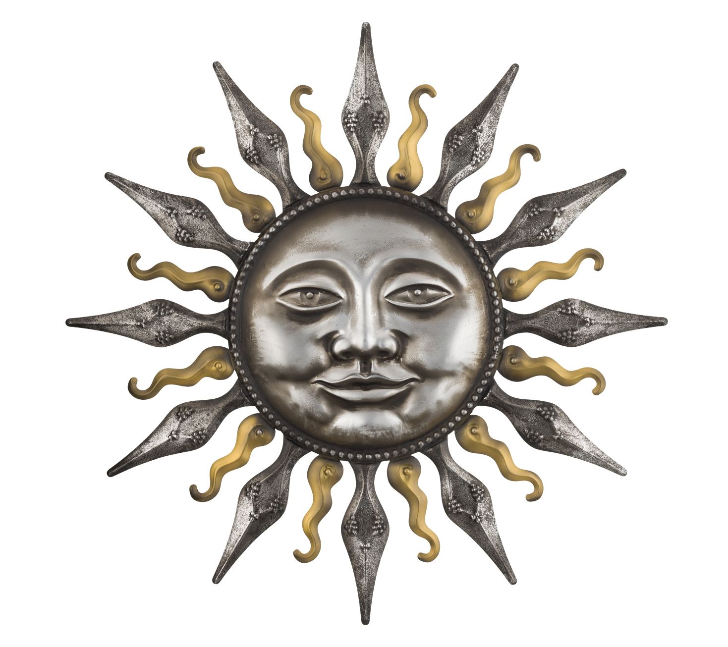 Adorn your home with this eye-catching metallic sun wall decor in a striking antique pewter finish. Its detailed facial features and weather-resistant paint ensure it looks great indoors or outdoors. From Regal Art & Gift.