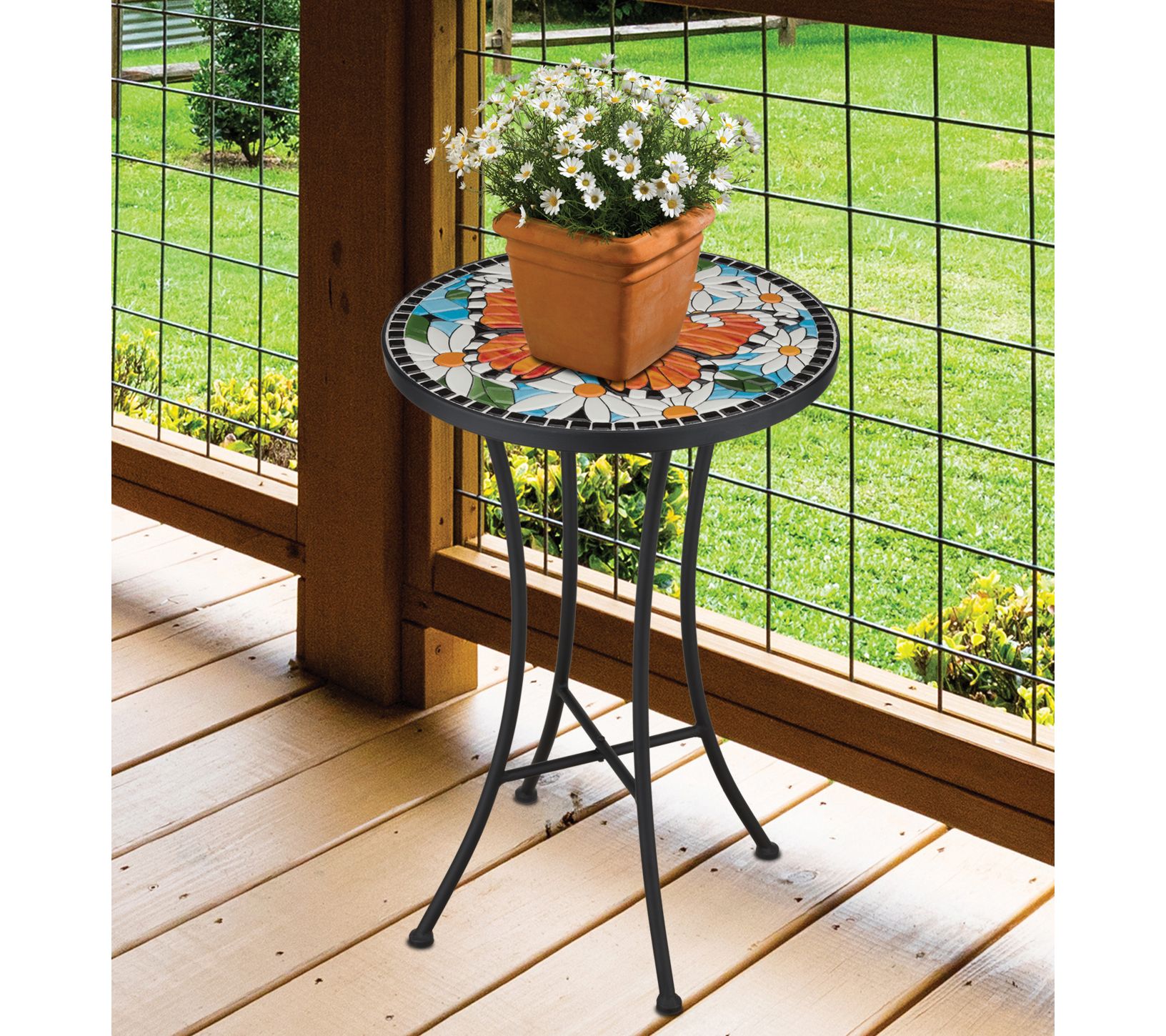 Elevate your home decor with this vibrant mosaic plant stand, adorned with a beautiful butterfly design. Ideal for holding your favorite houseplants or acting as a colorful side table, it effortlessly blends style with functionality. From Regal Art & Gift.