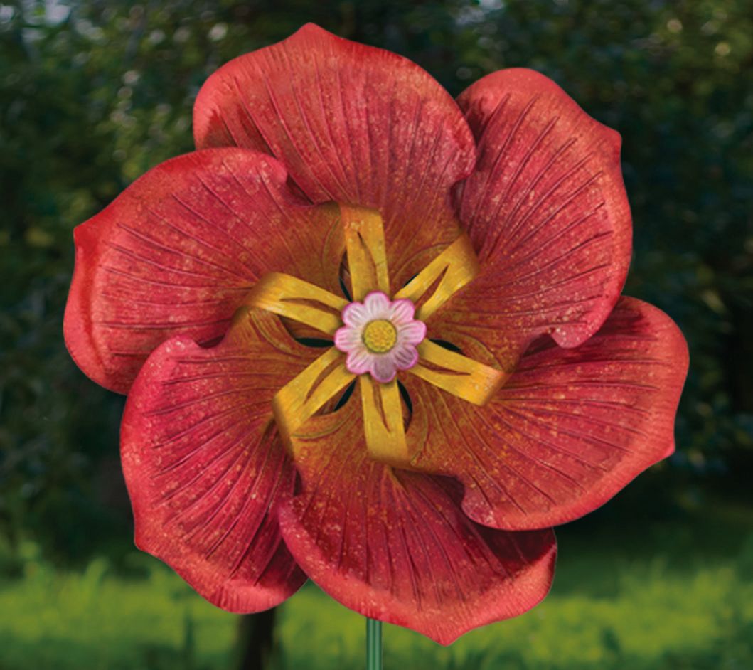 Regal Art & Gift Textured Flower Spinner Stake- Poppy