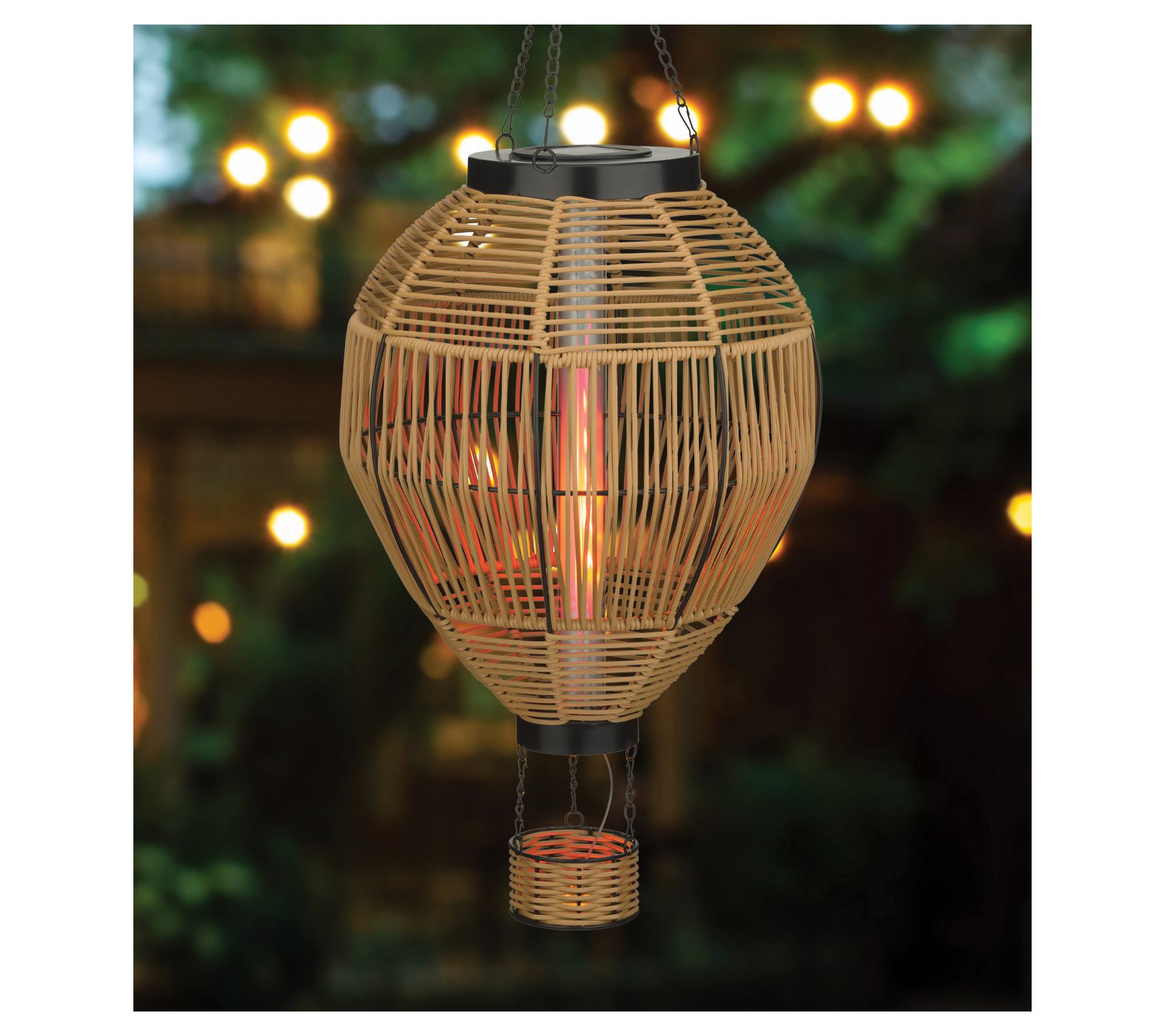 Illuminate your outdoor space with this charming wicker hot-air balloon lantern. Solar-powered and beautifully designed, the lantern features a woven wicker design that's accented with flickering LED lights inside the basket to create a delightful visual. From Regal Art & Gift.