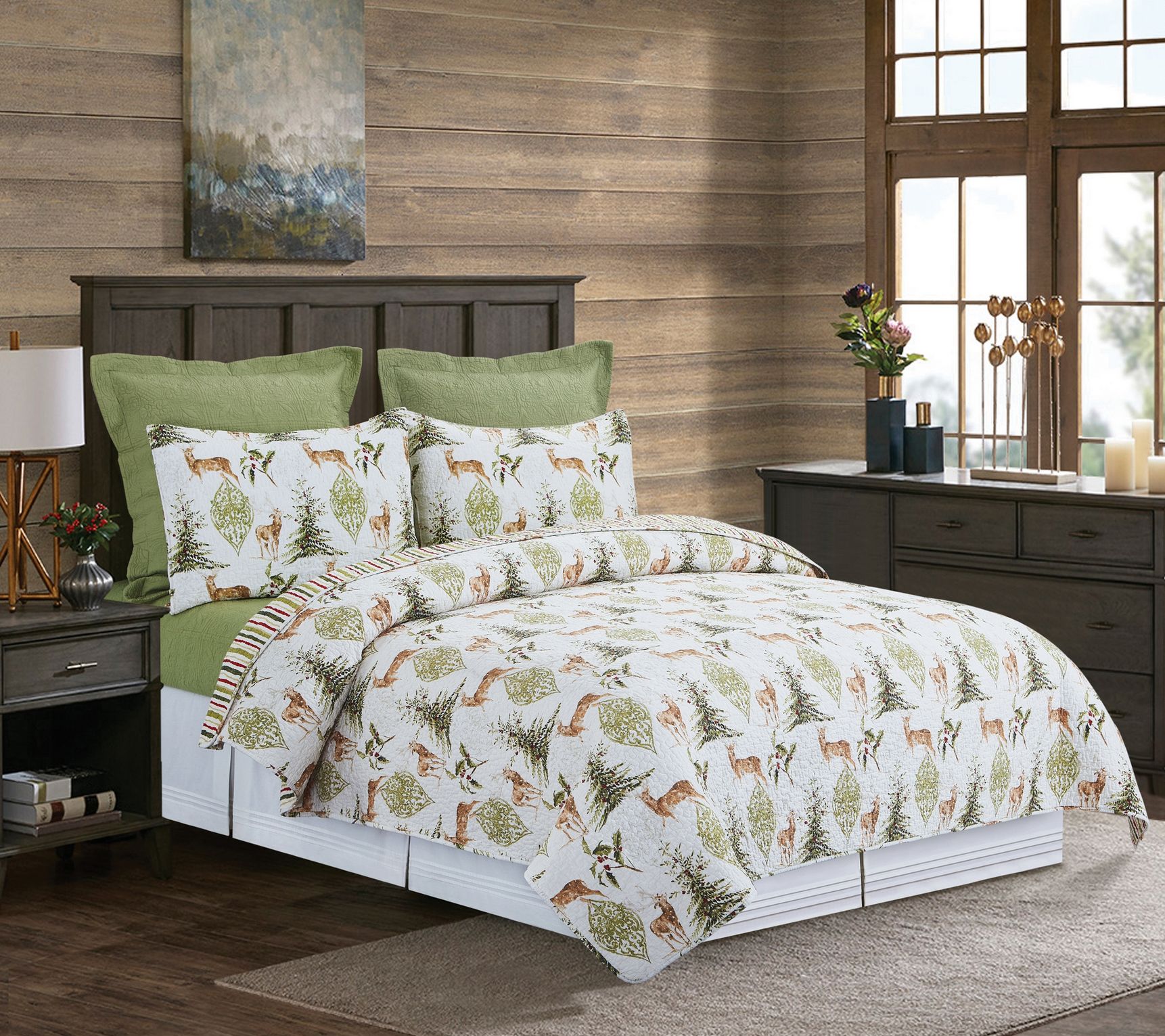 Reindeer Tracks 3-Piece Cotton King Quilt Set by Valerie