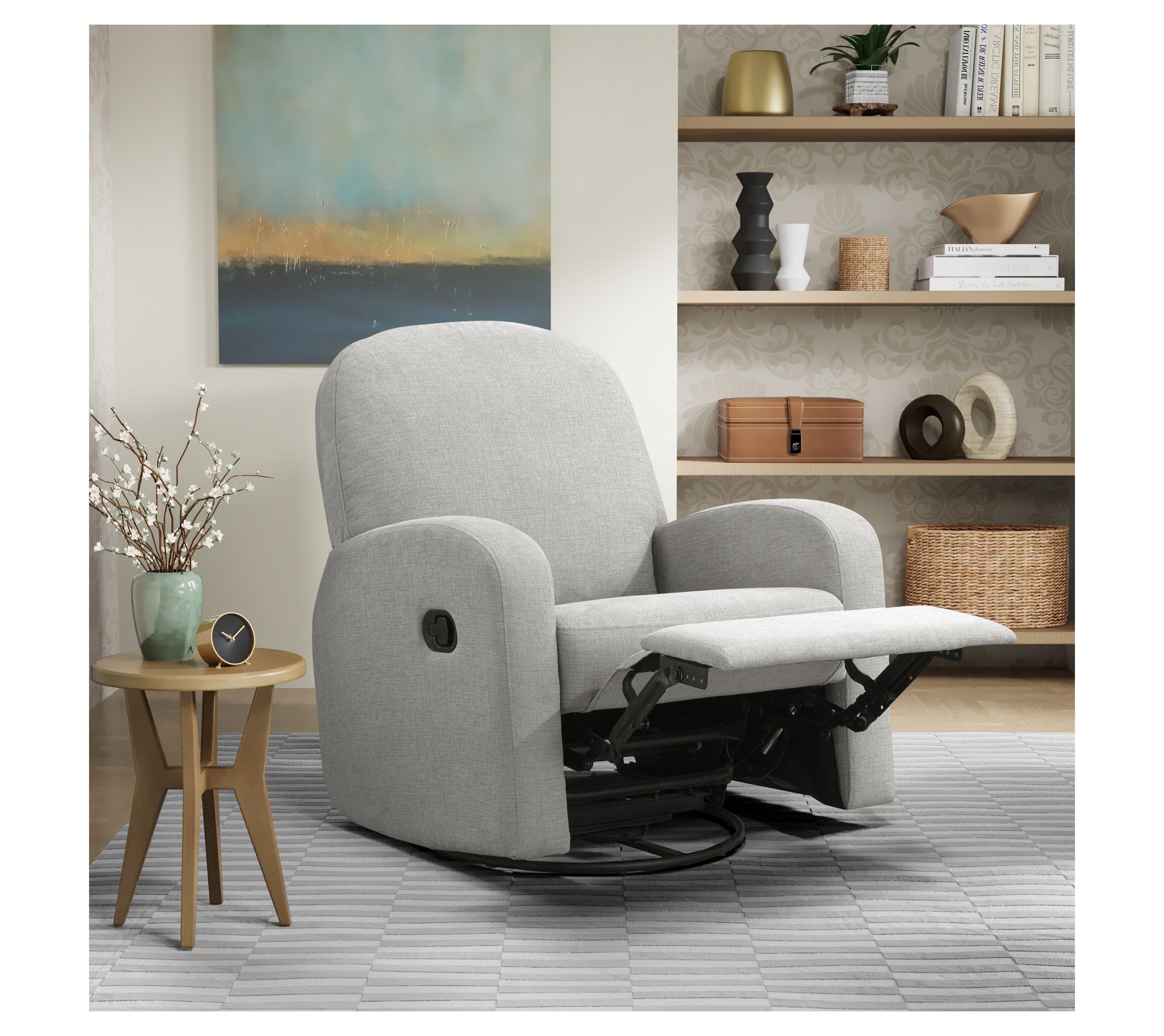 Sinking into this recliner at the end of the day feels like a well-deserved treat. The smooth swivel and gentle rocking motion make it easy to unwind, whether you're catching up on your favorite show or savoring a quiet moment with a book. Plush upholstery and a resilient, supportive frame add to your comfort every time you take a seat. From Relax-A-Lounger.