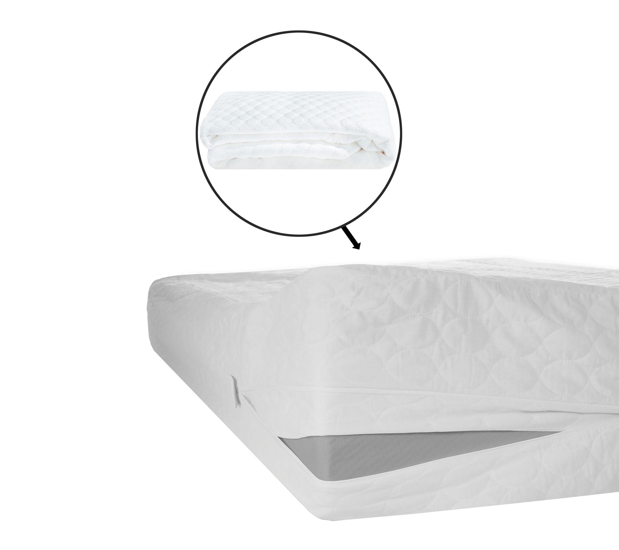 Keep mornings brighter and evenings more restful with this queen mattress protector that fully encases your bed. Made of soft, quilted cotton, it offers comfort while helping to shield your mattress, fitting easily and staying secure with a zippered closure. From Remedy.
