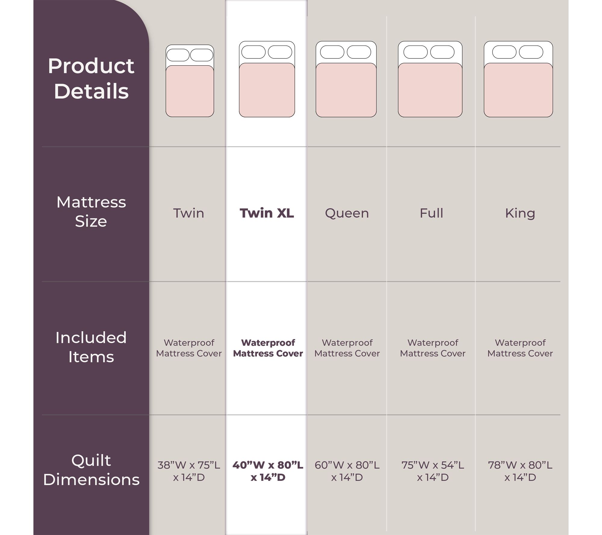 • Fits Twin XL mattress up to 14" thick