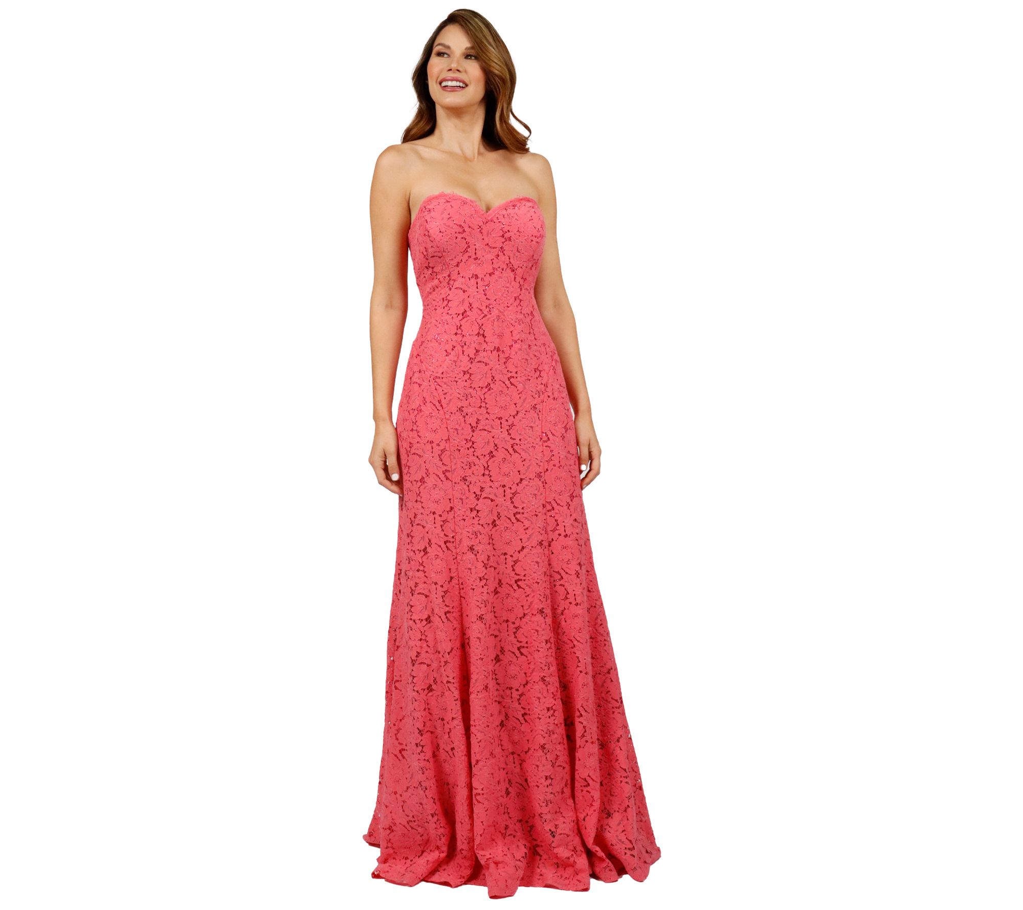Make your entrance a vision of elegance and romance with this stunning strapless dress. Crafted with exquisite lace and a captivating strapless sweetheart neckline, this ankle-length gown is designed to make any special occasion unforgettable. From Rene by Rene Ruiz.