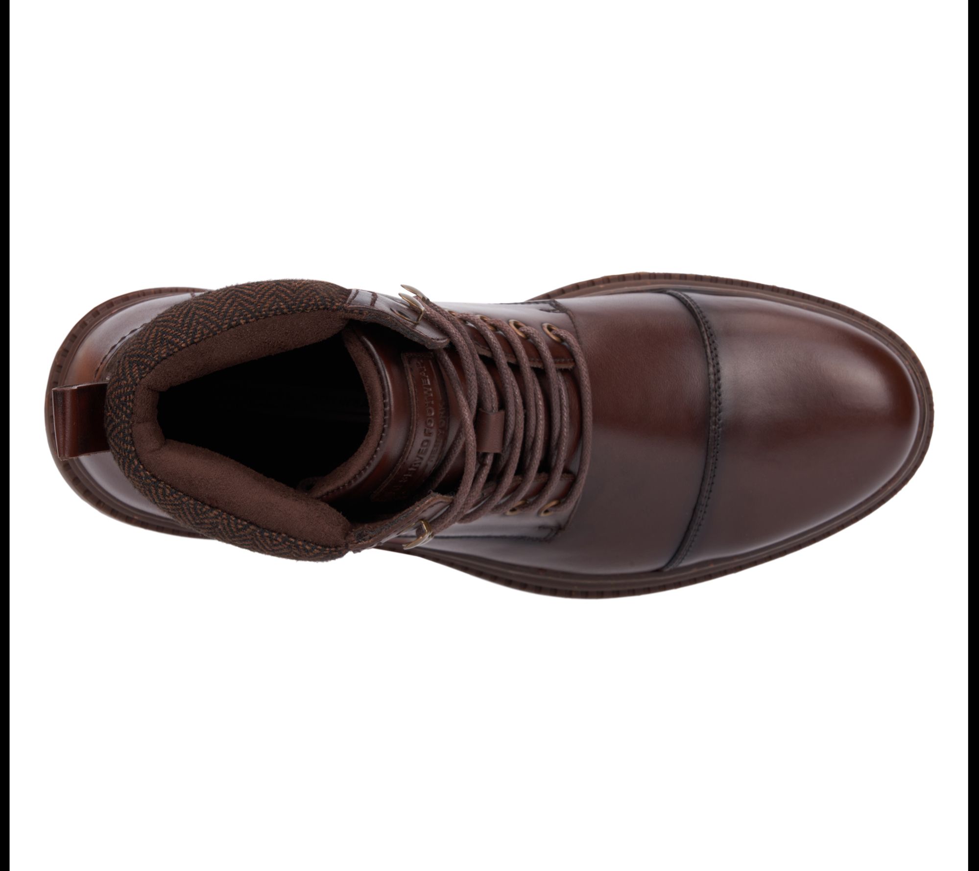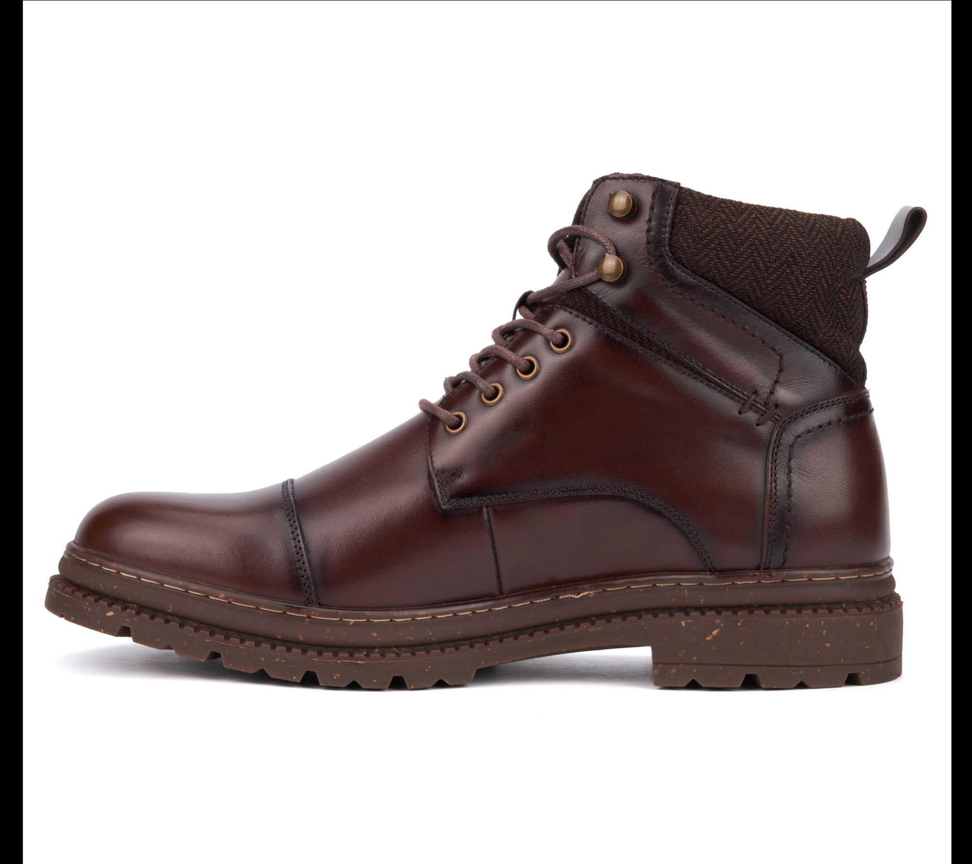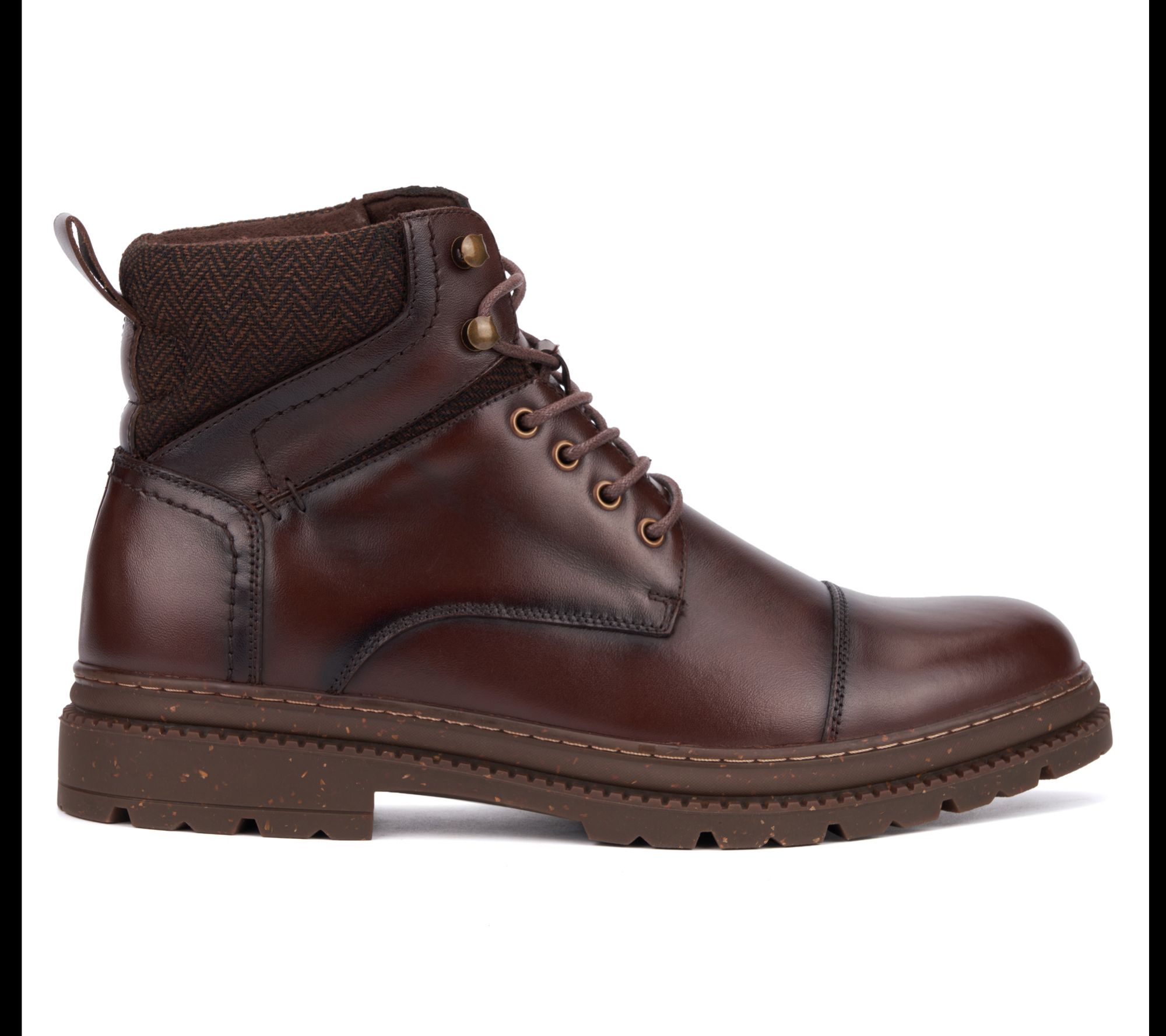 • Lace-up front, capped toe