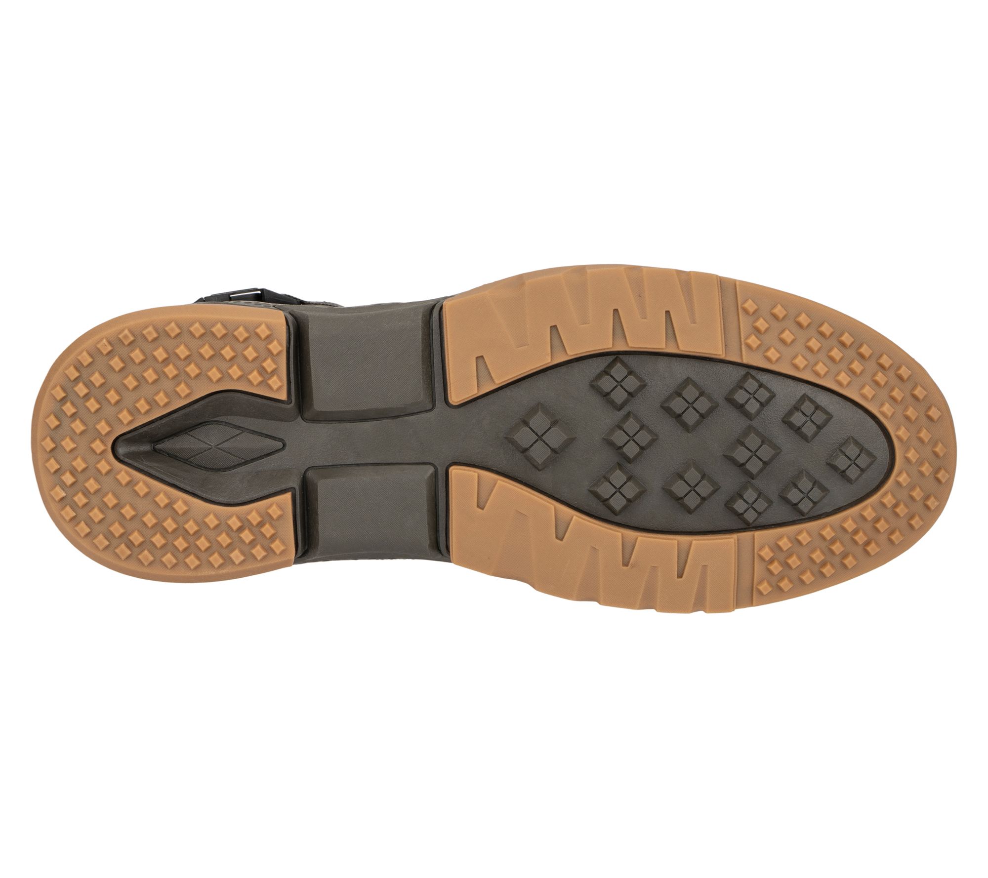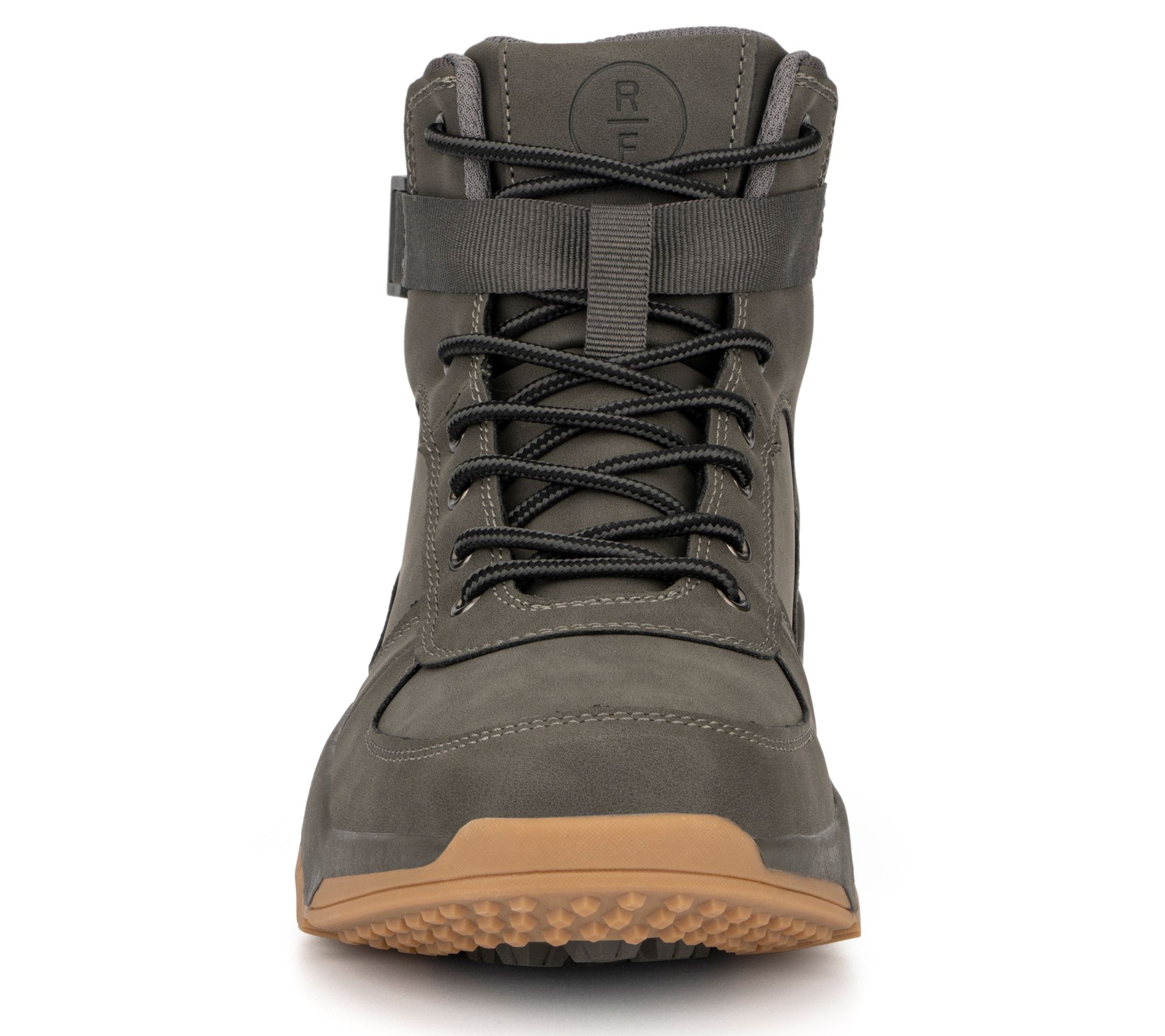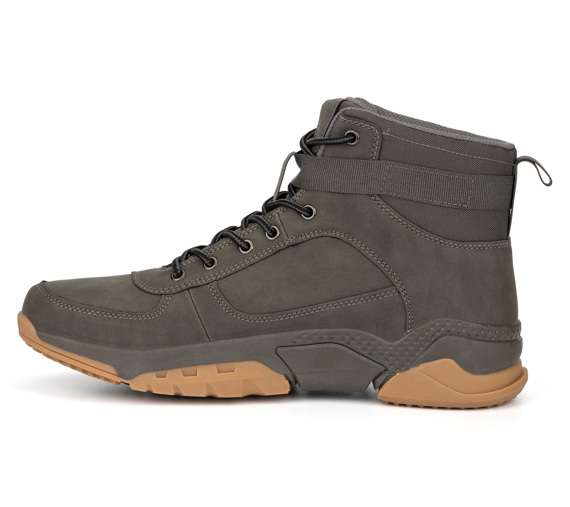 • Lace-up style, side buckle, back pull tab, rounded toe