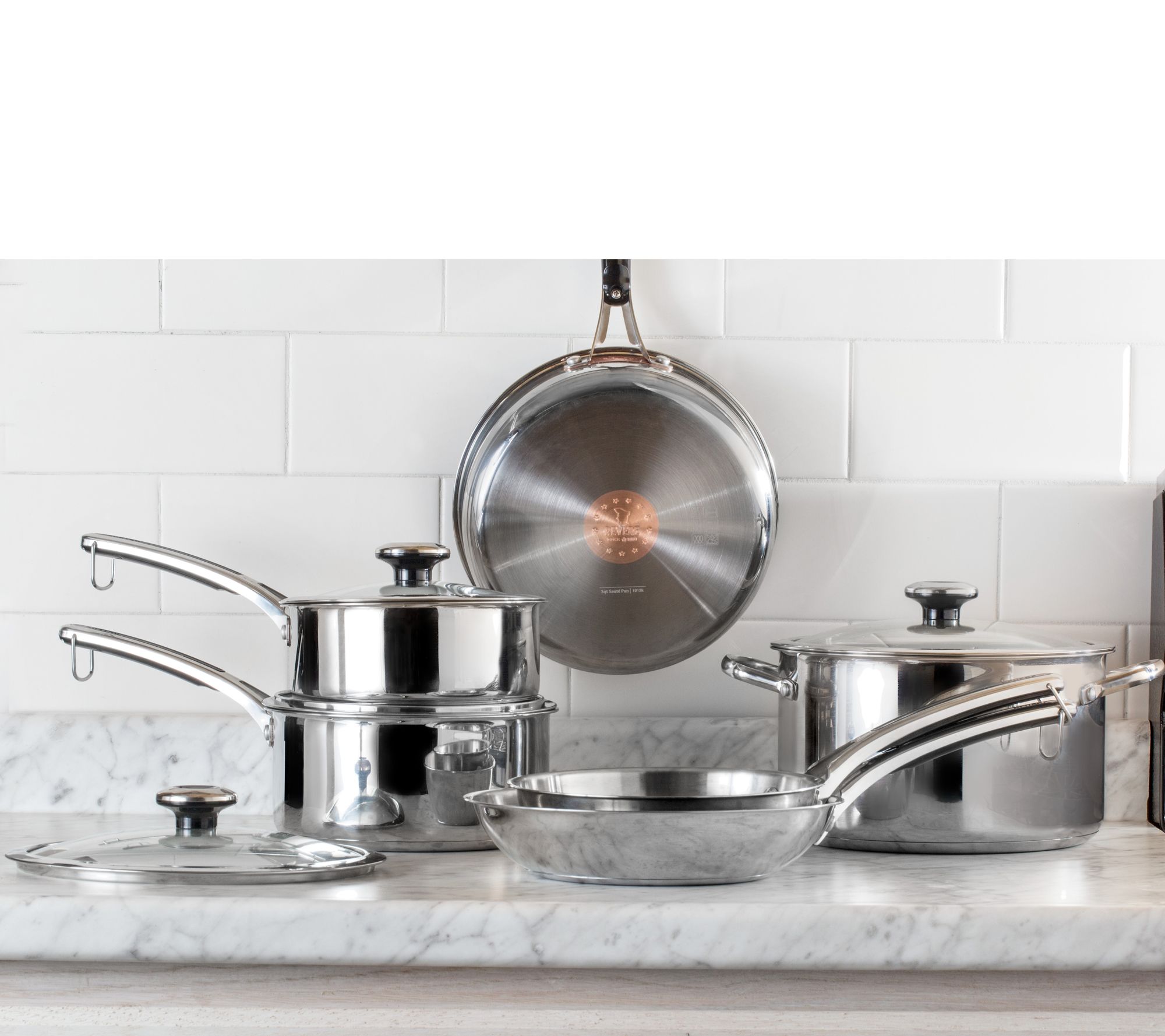 With an impressive assortment of frying pans, saucepans, and stockpots, this Revere stainless steel cookware collection fills your kitchen with everything you need for a world of culinary delights. From Revere.