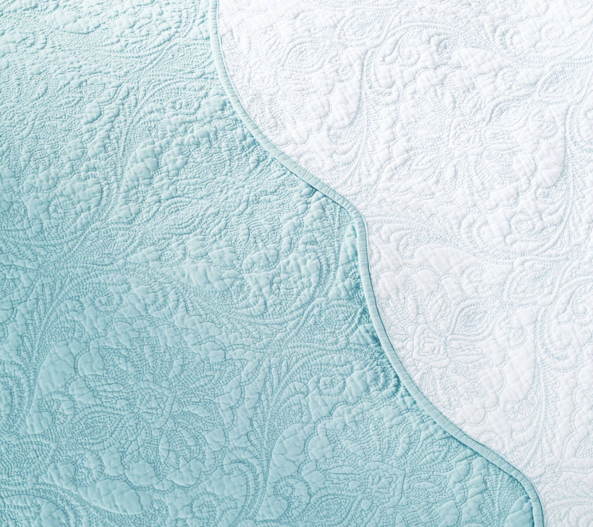 Weaving her passion for design with vintage inspiration, Catherine Zeta-Jones is delighted to bring you this coverlet set that coats your bed in soft cotton. Displaying quality workmanship, the gracefully stitched pattern is reminiscent of yesteryear with a classic sensibility, yet durable for modern wear. The curved sweep of the scalloped edge suggests this reversible coverlet is more than just a covering, but a very special keepsake to be treasured season after season. From Casa Zeta-JonesTM by Catherine Zeta-Jones.
