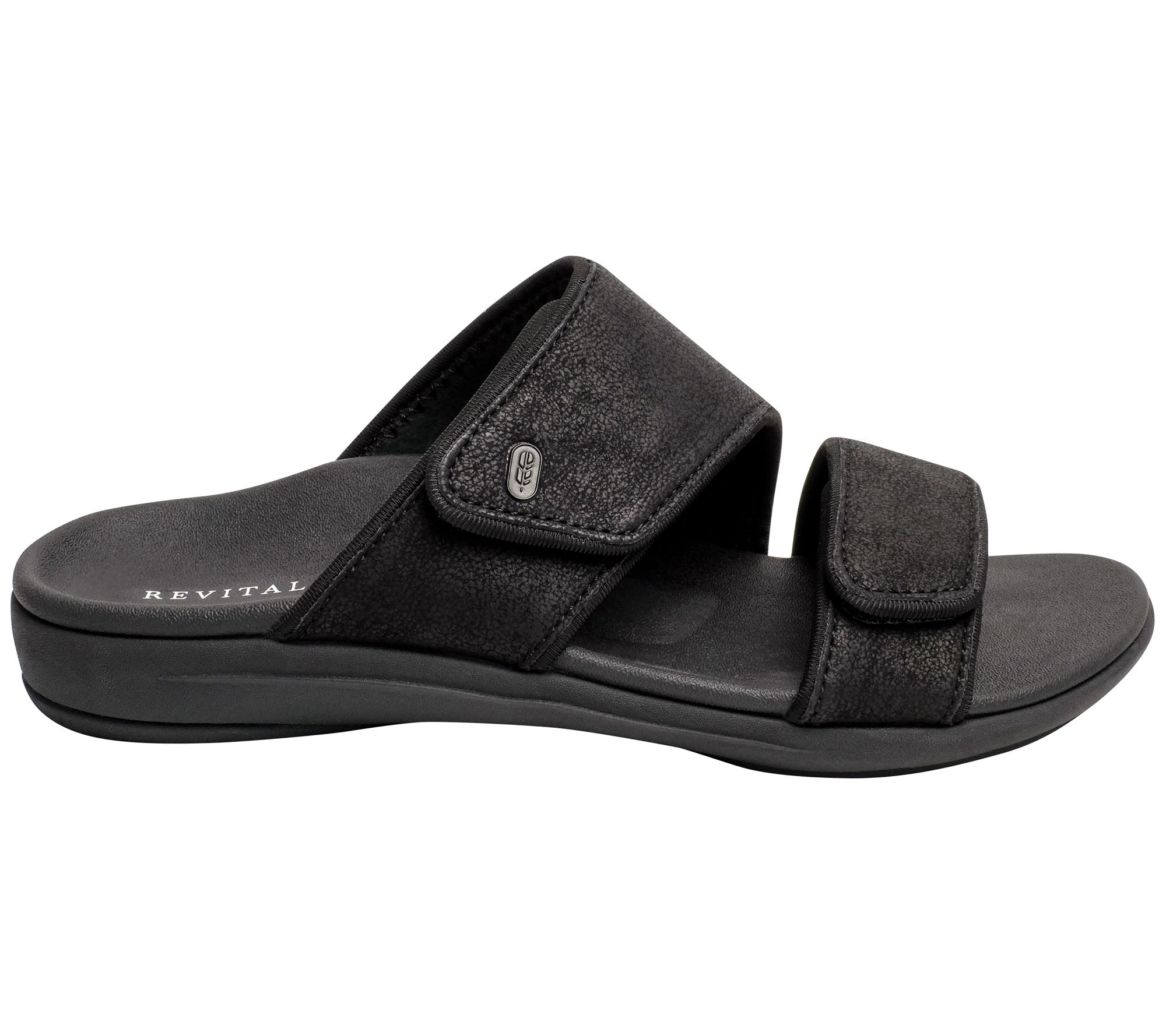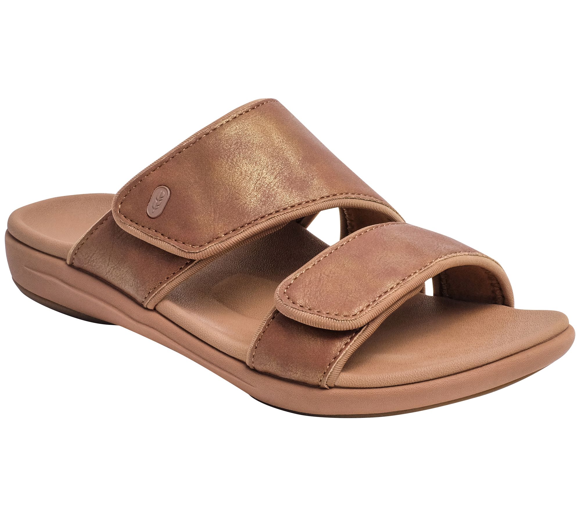 Shimmering, breezy style that easily takes you from the backyard pool to lunch out with the girls, this fun sandal offers adjustable straps, a beautiful metallic finish, and an insole that gives you all-day comfort. From Revitalign.