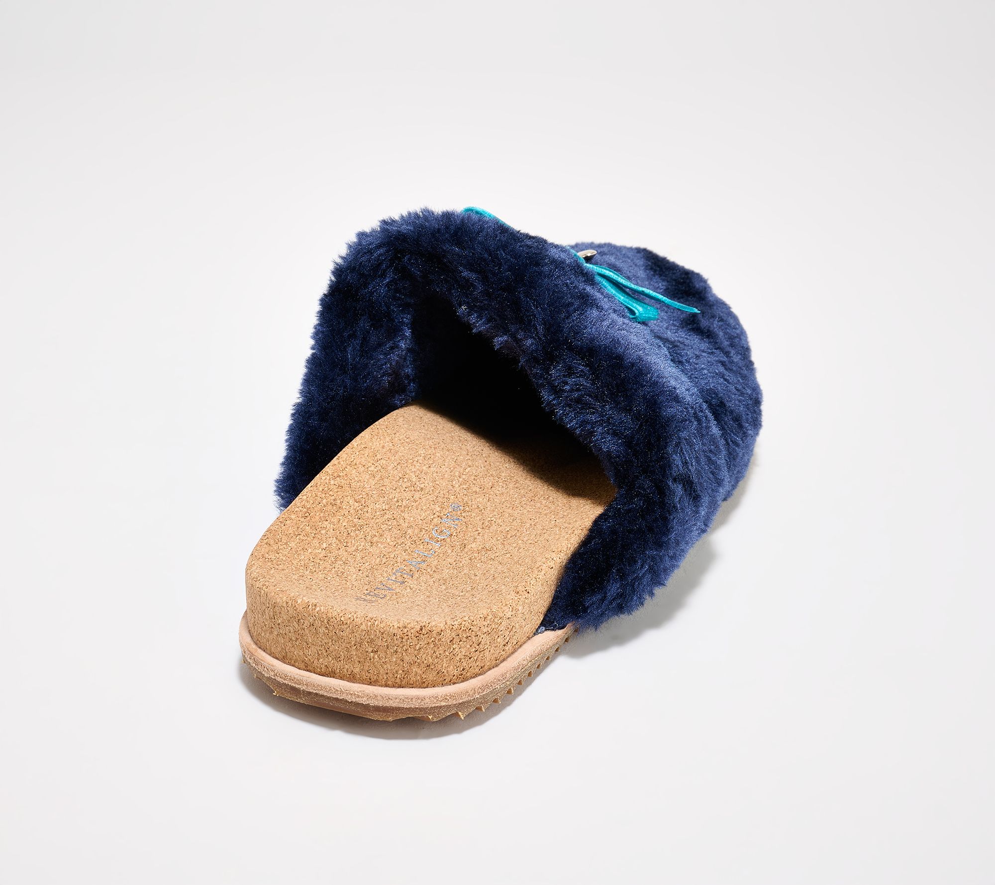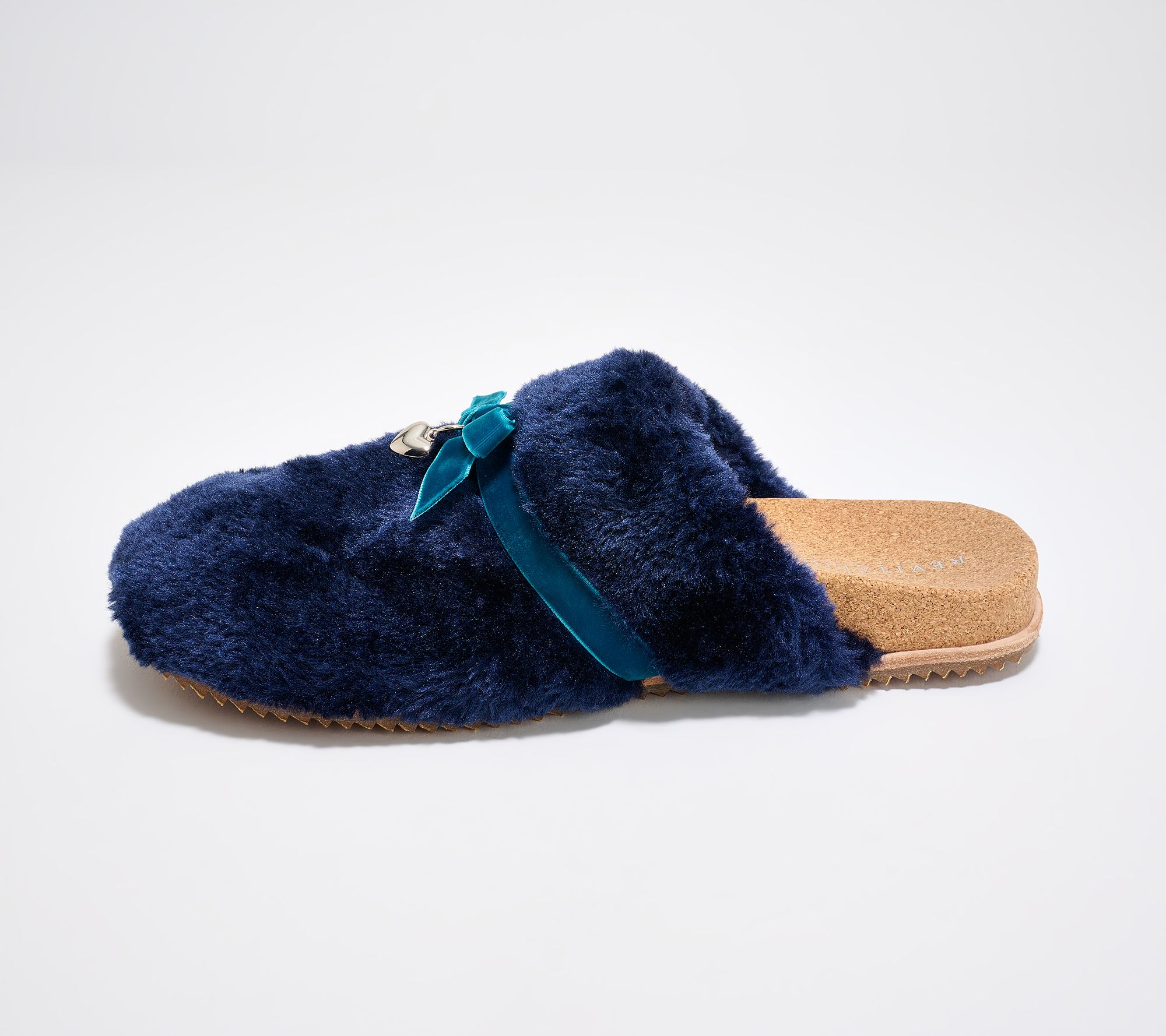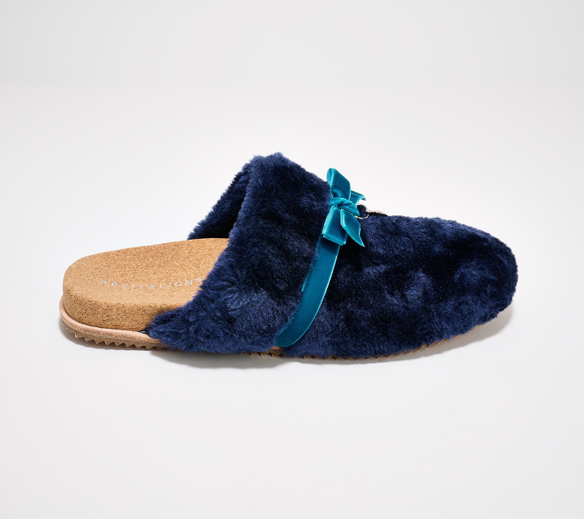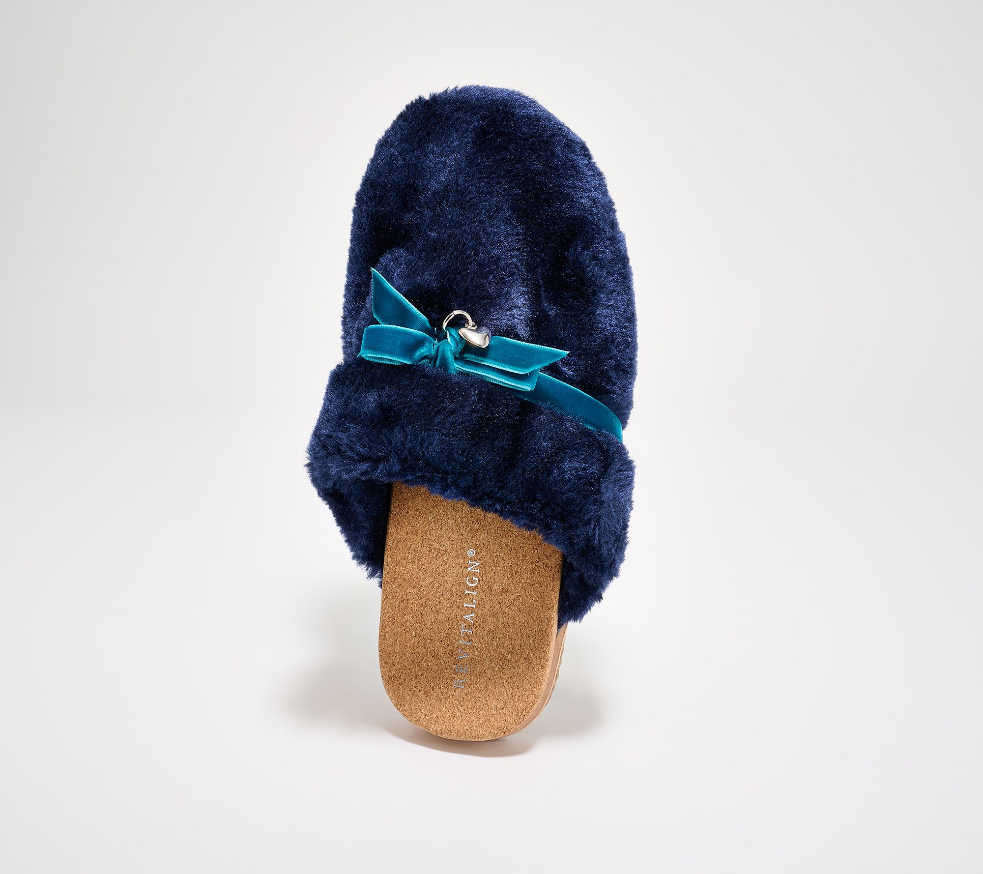 Step quietly into relaxation with these charming slippers, adorned with a velvet ribbon and a delicate heart charm for a playful accent. The soft low pile fleece upper keeps your feet cozy, while a natural cork-wrapped footbed with built-in orthotic and metatarsal support helps make every step feel easy. From Revitalign™.