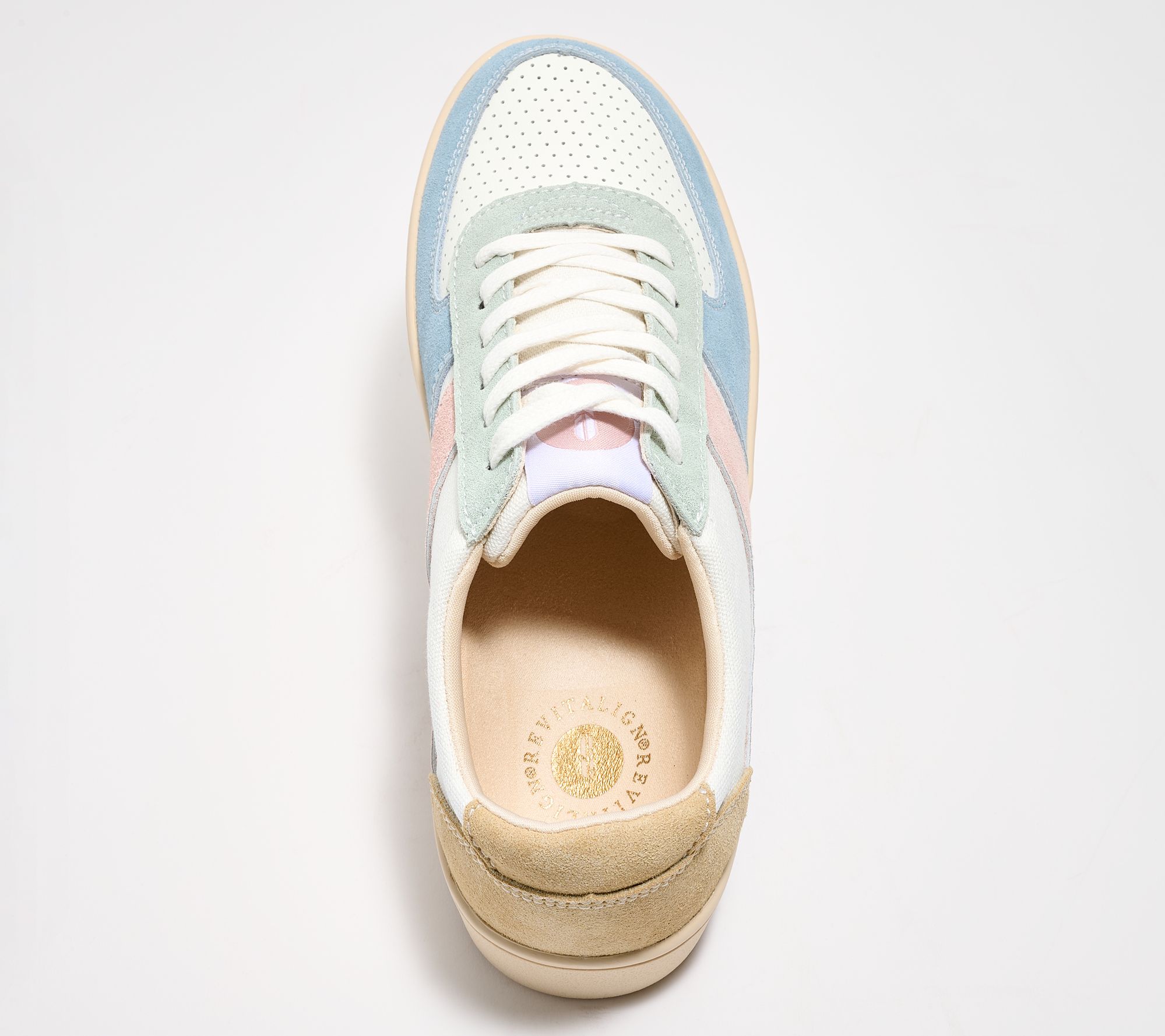 Casual style doesn't have to look athletic. Keep the gym shoes for the workout and lace into these Revitalign leather sneakers when the vibe is casual but your style still craves cute. Your laid-back look just got leveled up. From RevitalignTM.
