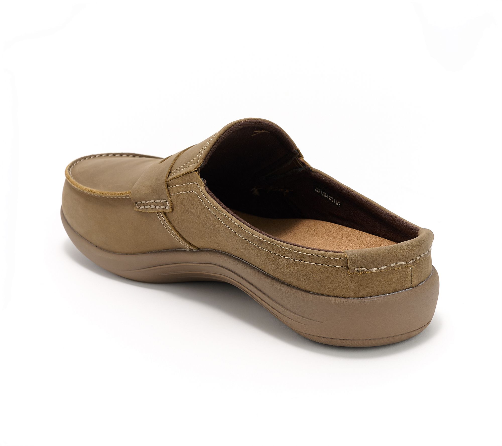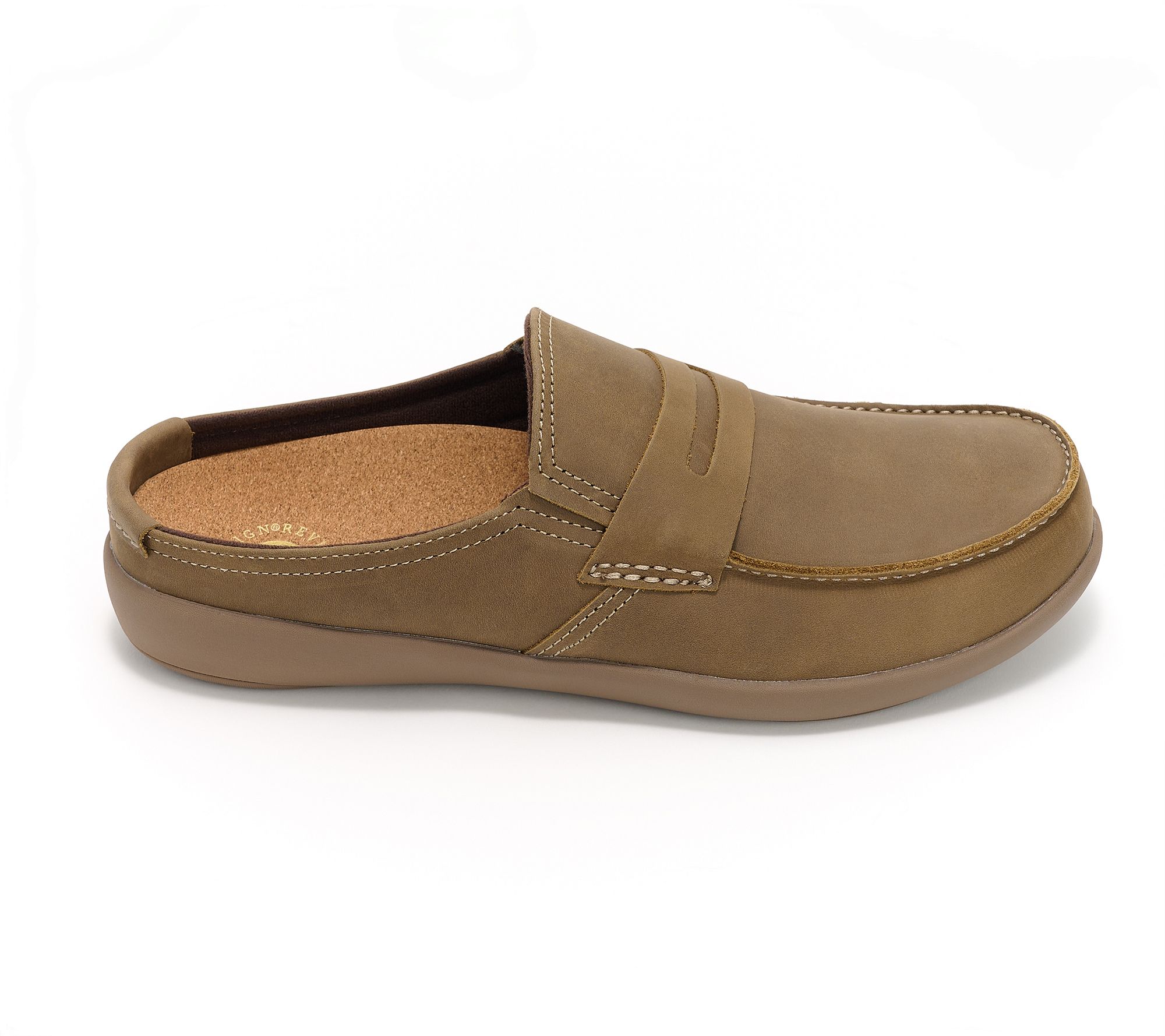 Slide into relaxed comfort whether you're at home or enjoying a casual outing with these men's slides. Crafted with soft nubuck leather and stretch gore panels, they offer easy on and off while the CLASSIC outsole provides orthotic and metatarsal support. The removable footbed and soft, brushed jersey lining make every step feel cushioned and supportive. From Revitalign™.