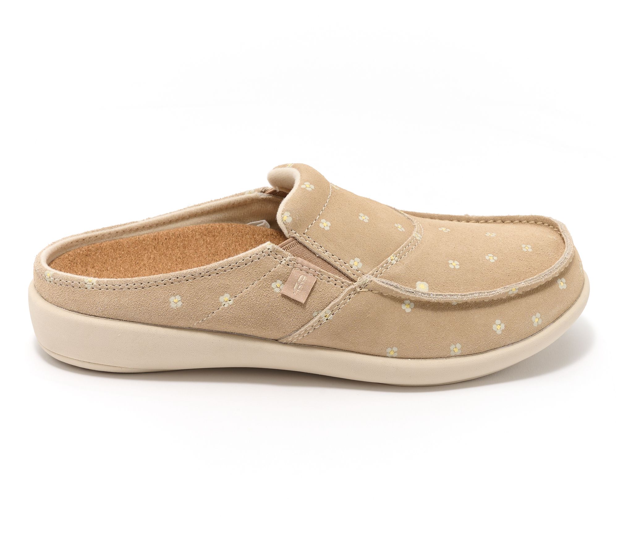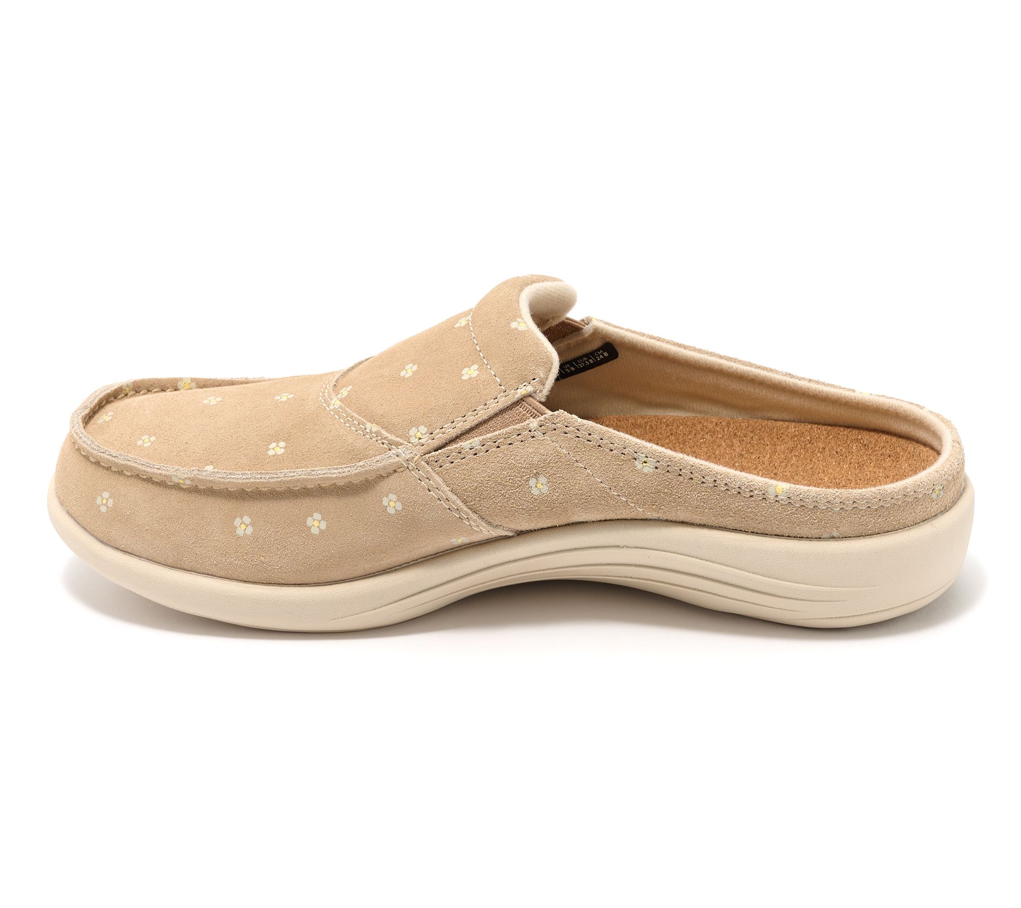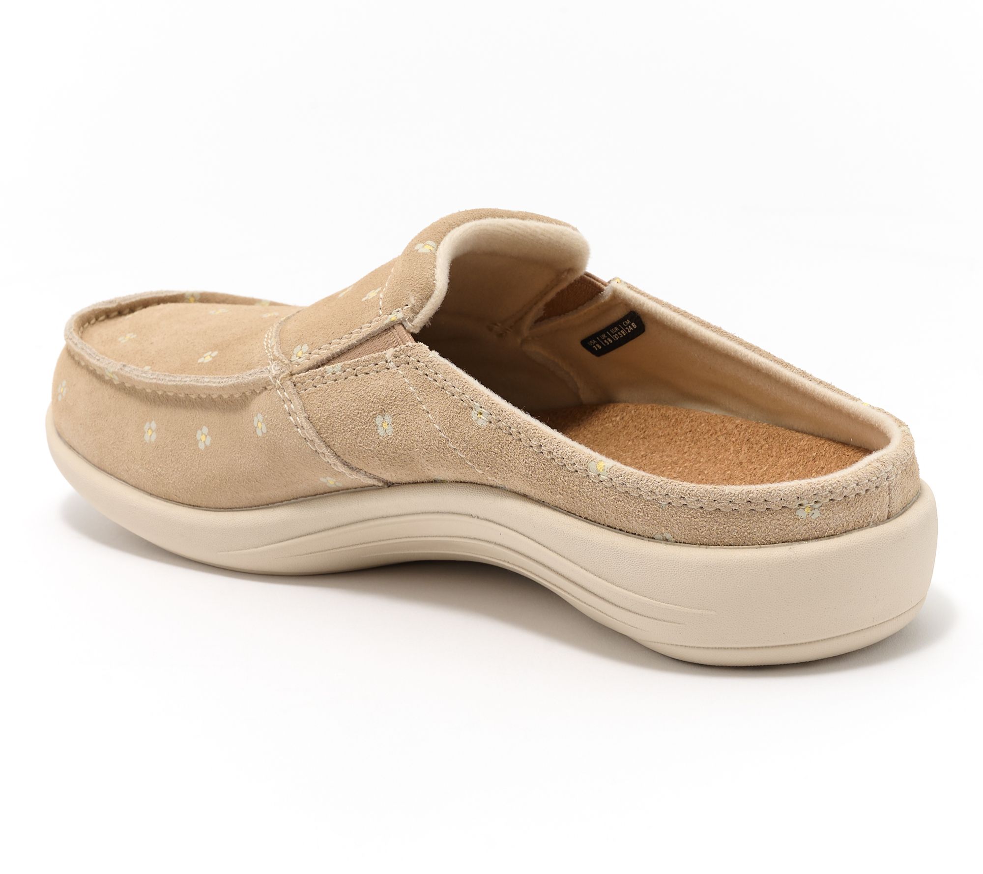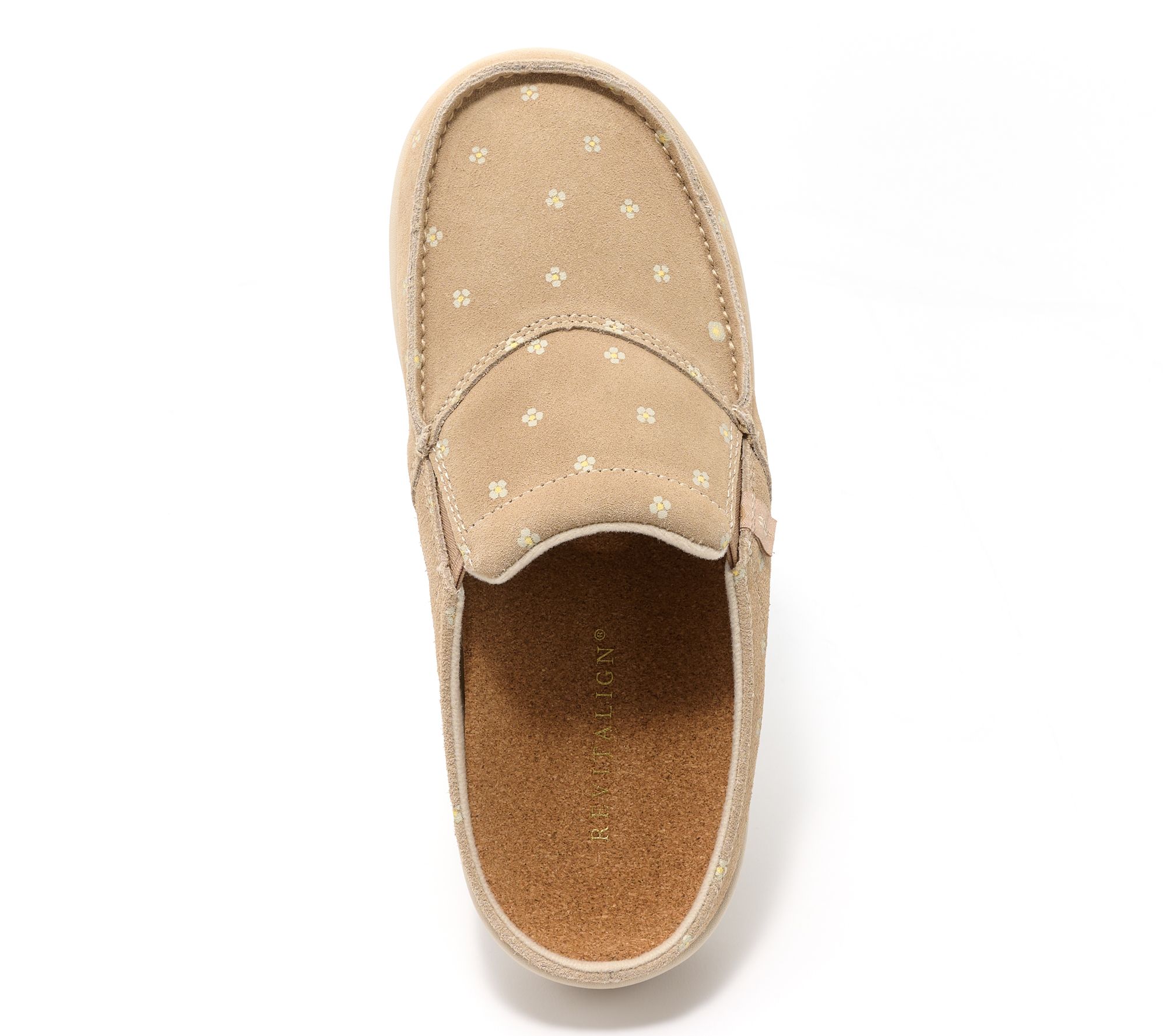 Whether you're watching a show or window shopping, these suede floral mules add a soft, whimsical touch to your day while delivering supportive comfort with every step. The memory foam footbed cushions and cradles, while flexible stretch panels and removable insole keep your stride easy and fresh. From Revitalign™.