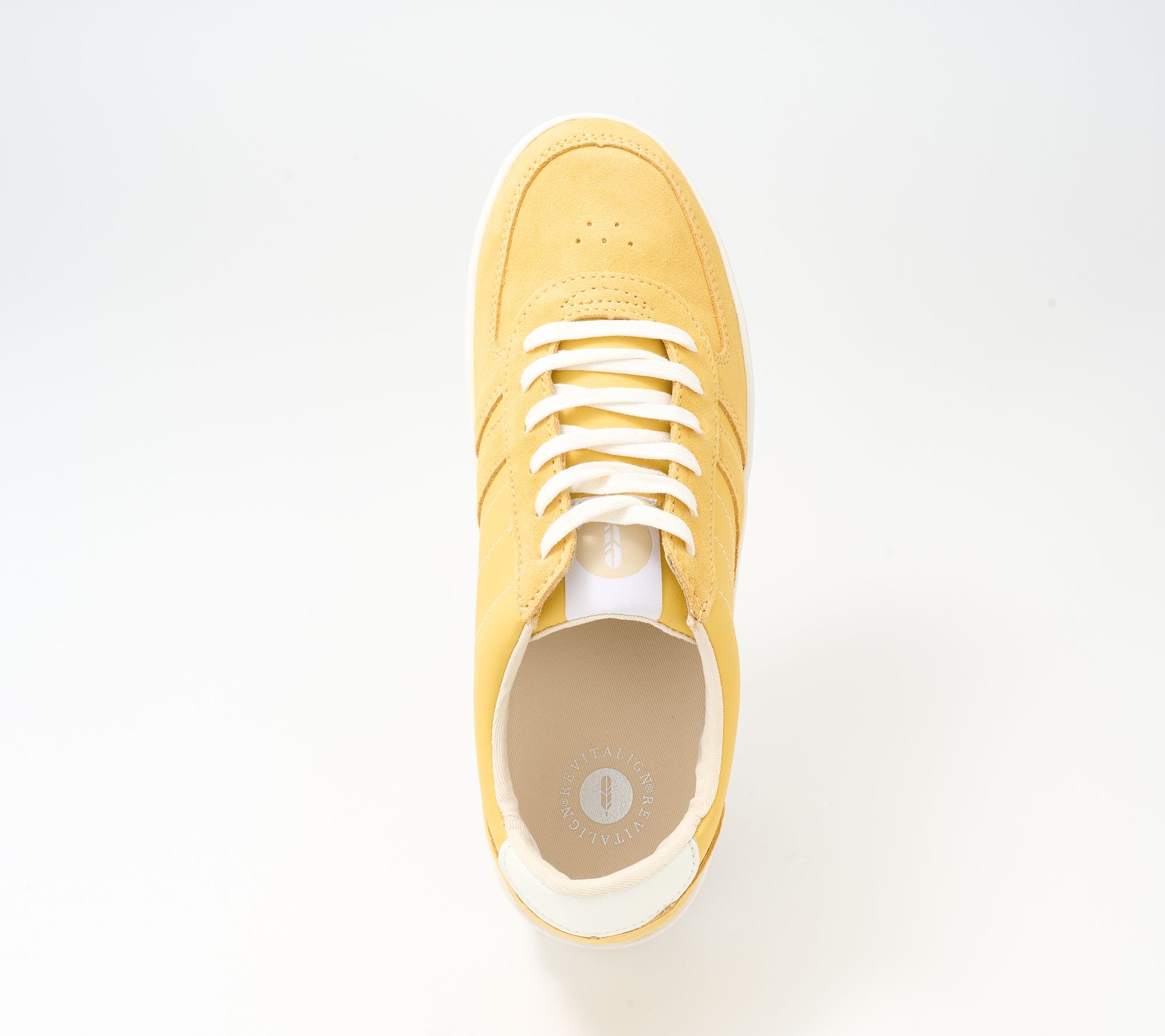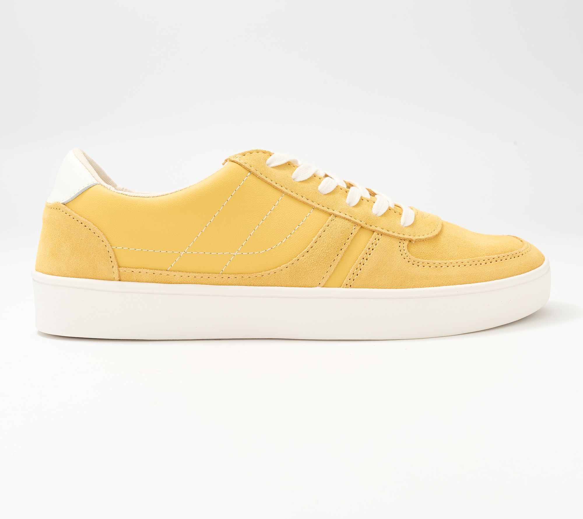 Comfort meets classic style as you breeze through busy mornings in these suede retro sneakers. Designed with a cushioned heel pillow and flat cotton laces, they deliver tailored support for every step, while a removable orthotic footbed ensures comfort whether you're headed to work or spending a day out. From Revitalign™.