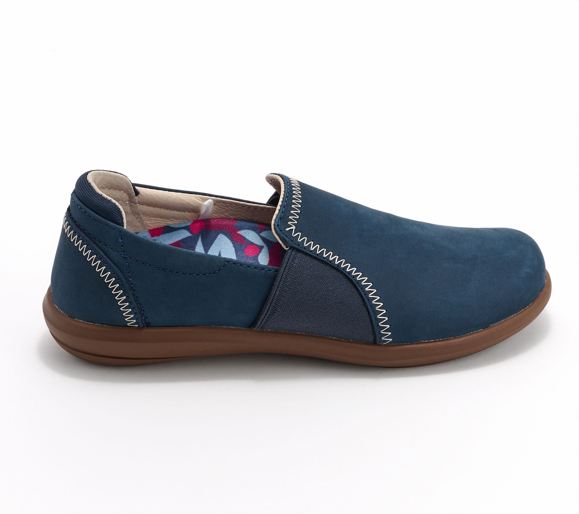 Easy comfort meets classic styling in these slip-on sneakers, designed with a brushed suede upper and stretch gore panels for quick changes on busy mornings. Full Contact Comfort® technology with metatarsal pads helps cushion every step, while a rugged outsole helps provide traction, whether you're walking the dog or catching up with friends. From Revitalign™.