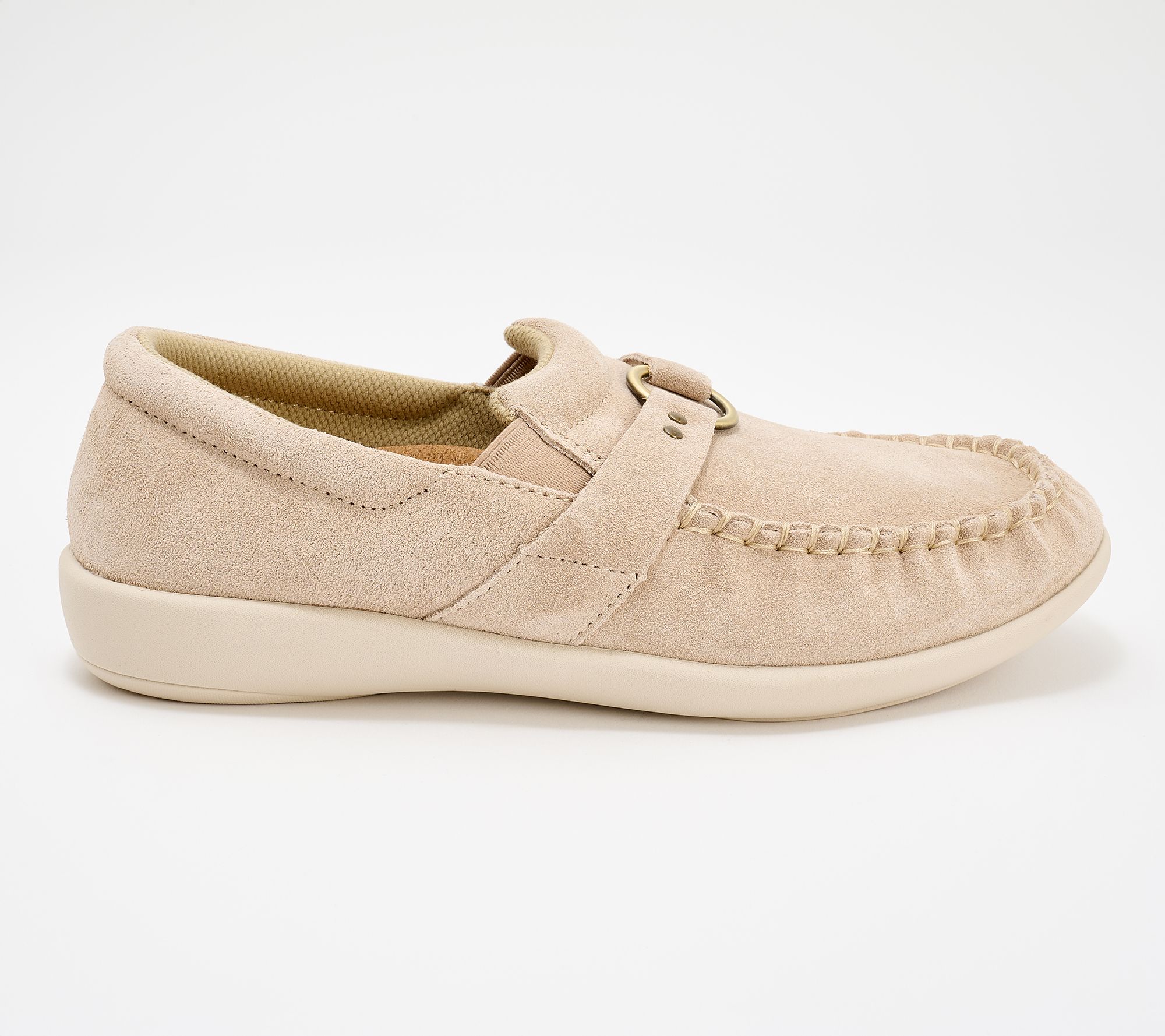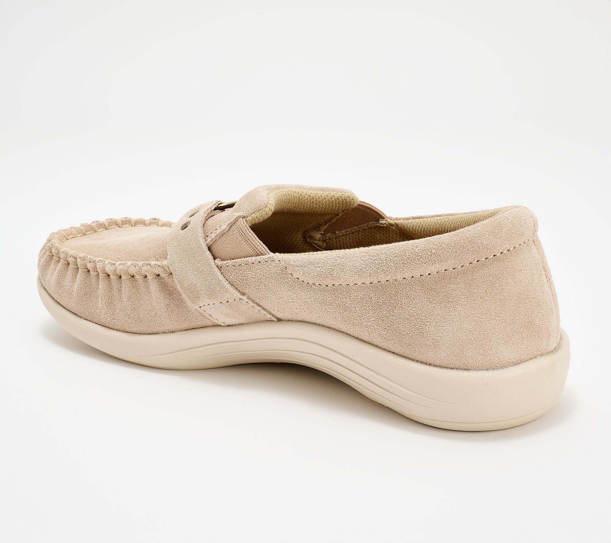 Enjoy all-day comfort as you move through your schedule with these suede slip-ons, designed with an orthotic footbed and plush linings for a cozy, supportive feel. Removable cushioning and classic support make them ideal for everything from morning walks to casual evenings. From Revitalign™.
