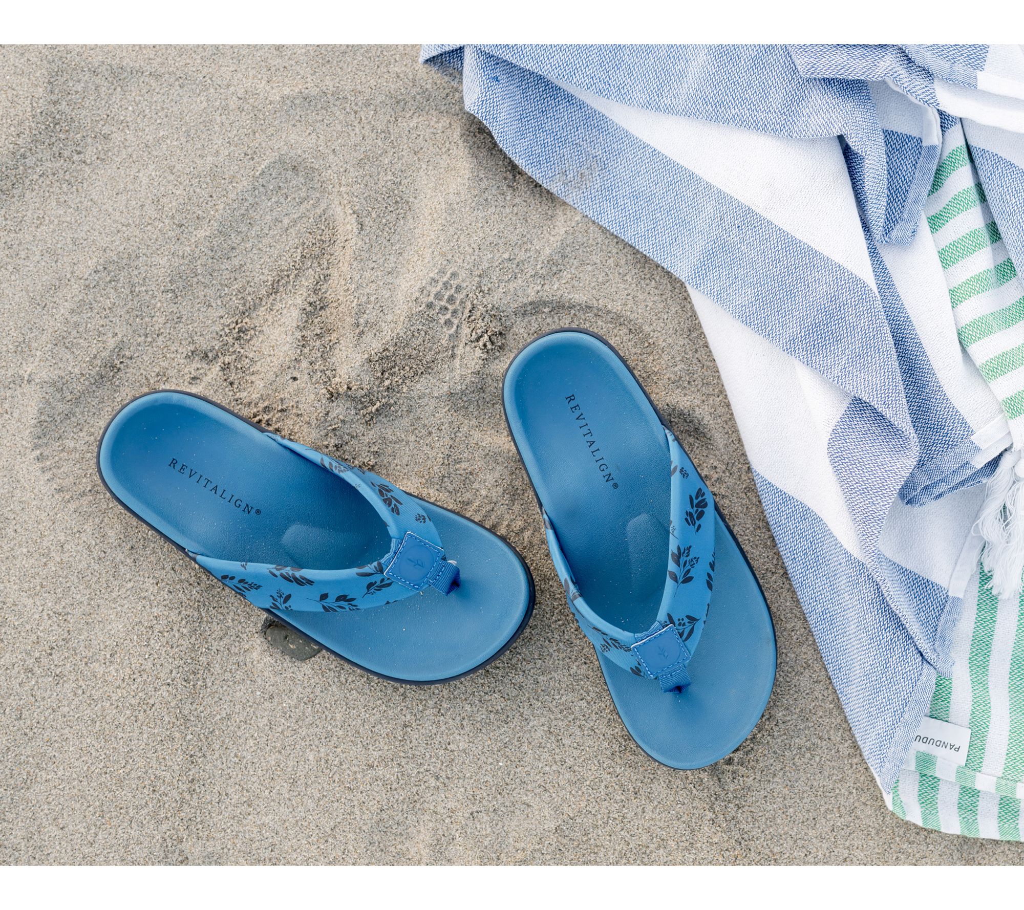 Whether you're headed to a backyard barbecue or slipping out for a coffee run, these orthotic thong sandals offer reliable support and all-day comfort. The botanical-inspired straps bring easy style, while the contoured footbed cushions every step, perfect for everyday errands or warm-weather escapes. From Revitalign™.