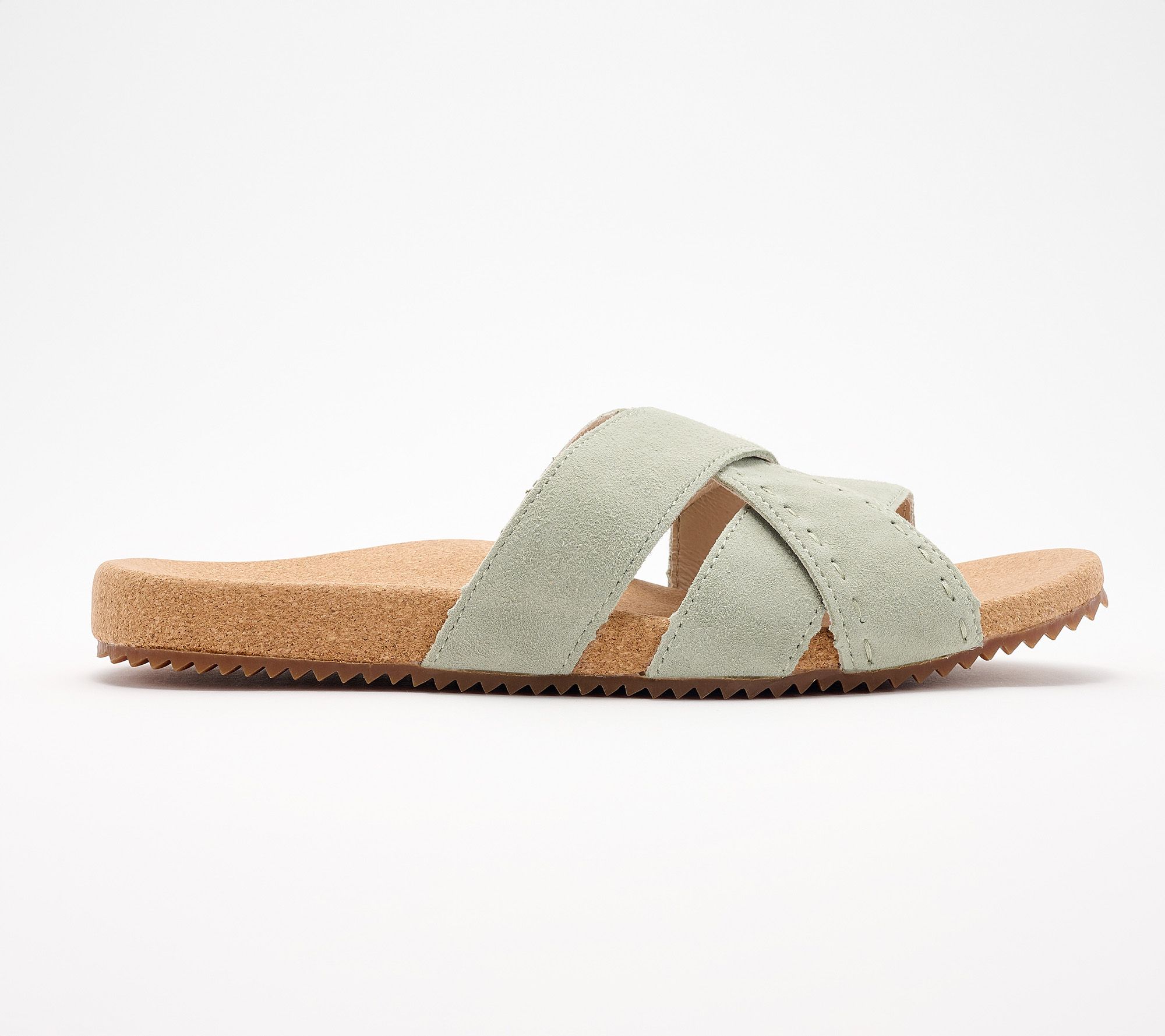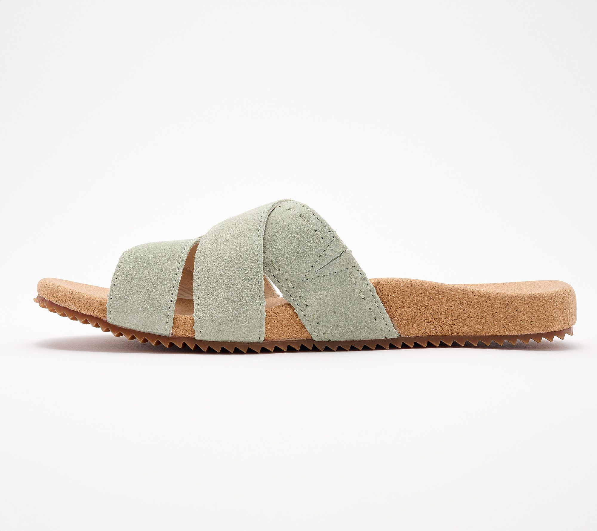 Sun's out, fun's out! It's time to feel the breeze with these toe-wiggling slide sandals from Revitalign. Whether you're planning a sunny stroll or heading to boardwalks and beaches, these soft strappy suede sandals merge all-day comfort with a touch of luxe. Enhanced with orthotic and metatarsal support, their artful cutout pattern and cork-wrapped footbed keep you feeling and looking relaxed while out and about. From Revitalign™.