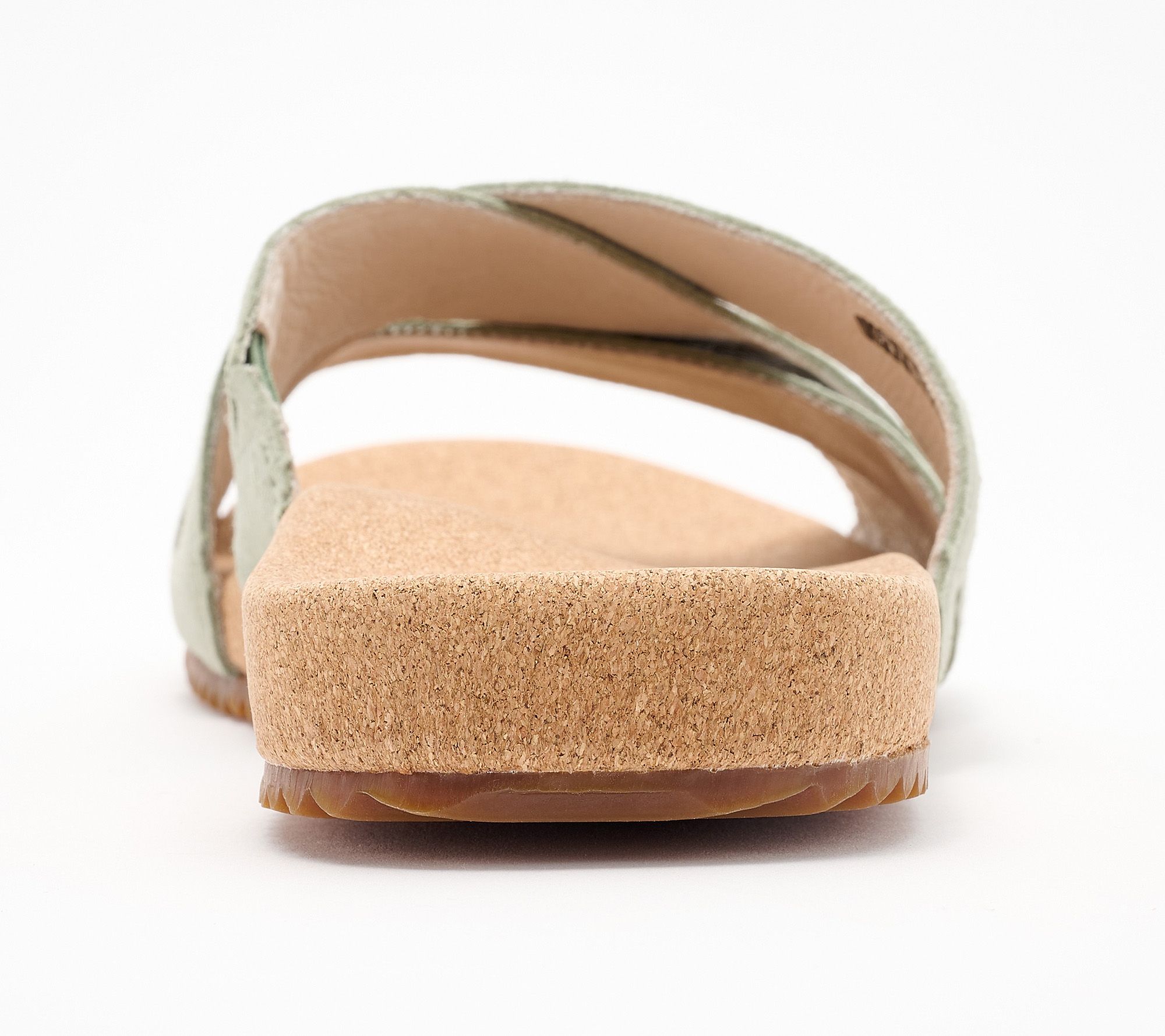 Cork-wrapped footbed with orthotic and metatarsal support, rubber outsole, non-removable footbed