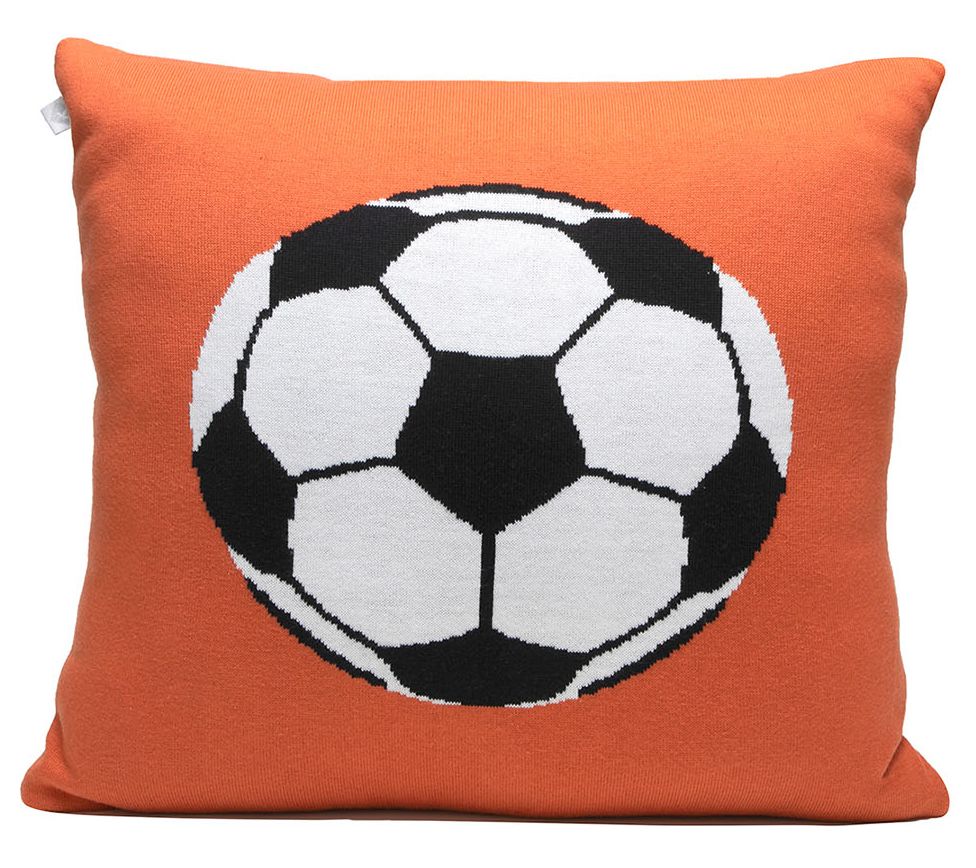 Add sporty style to your young athlete's space with the vibrant colors and cozy softness of this cheery soccer ball pillow. From Rian Tricot.