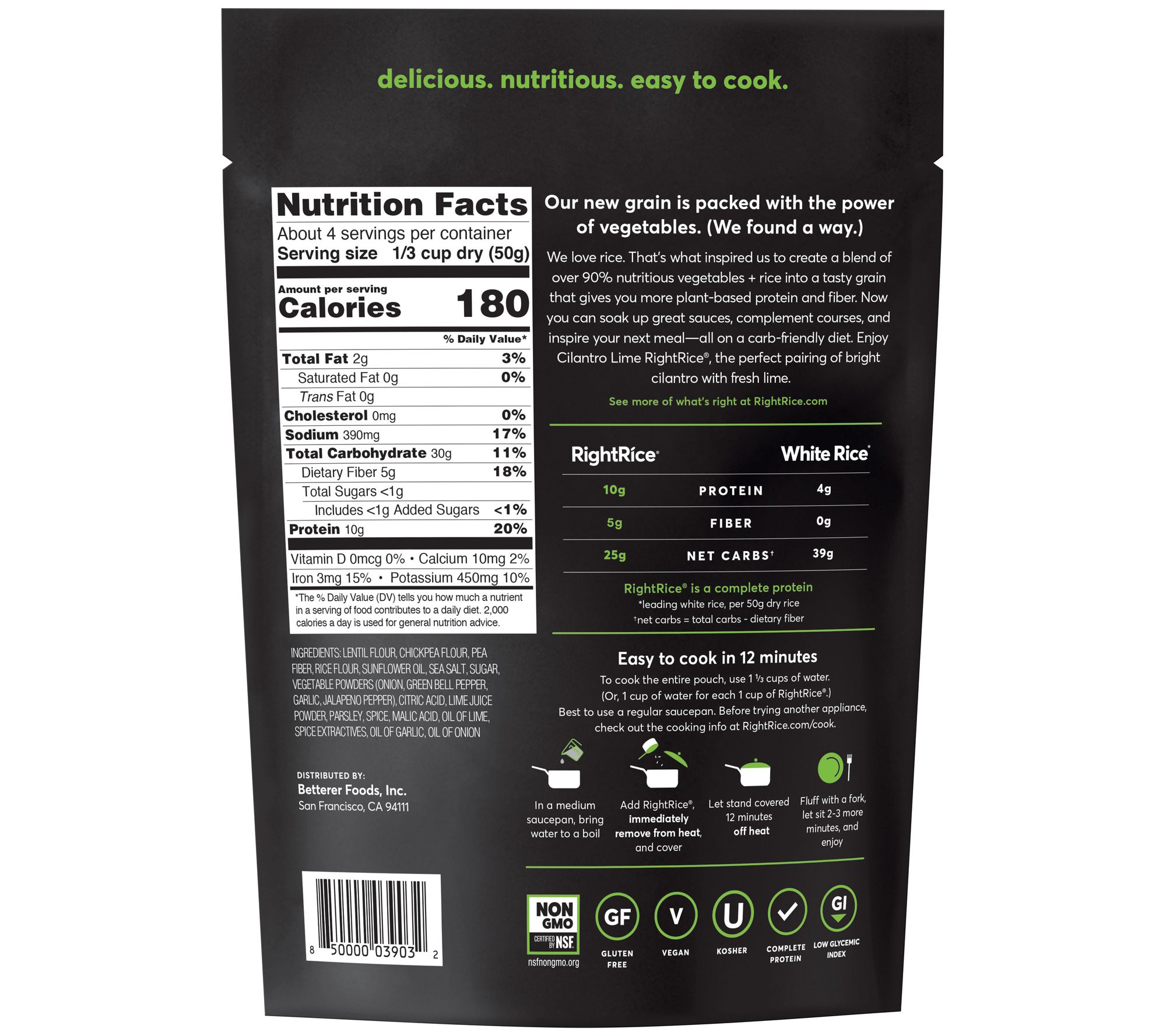 A quick side dish (you can feel good about) is in the bag. Packed with protein, fiber, and veggies, RightRice has all the flavor you crave without the empty calories. Just boil and enjoy classic comfort food -- the right way. From RightRice.