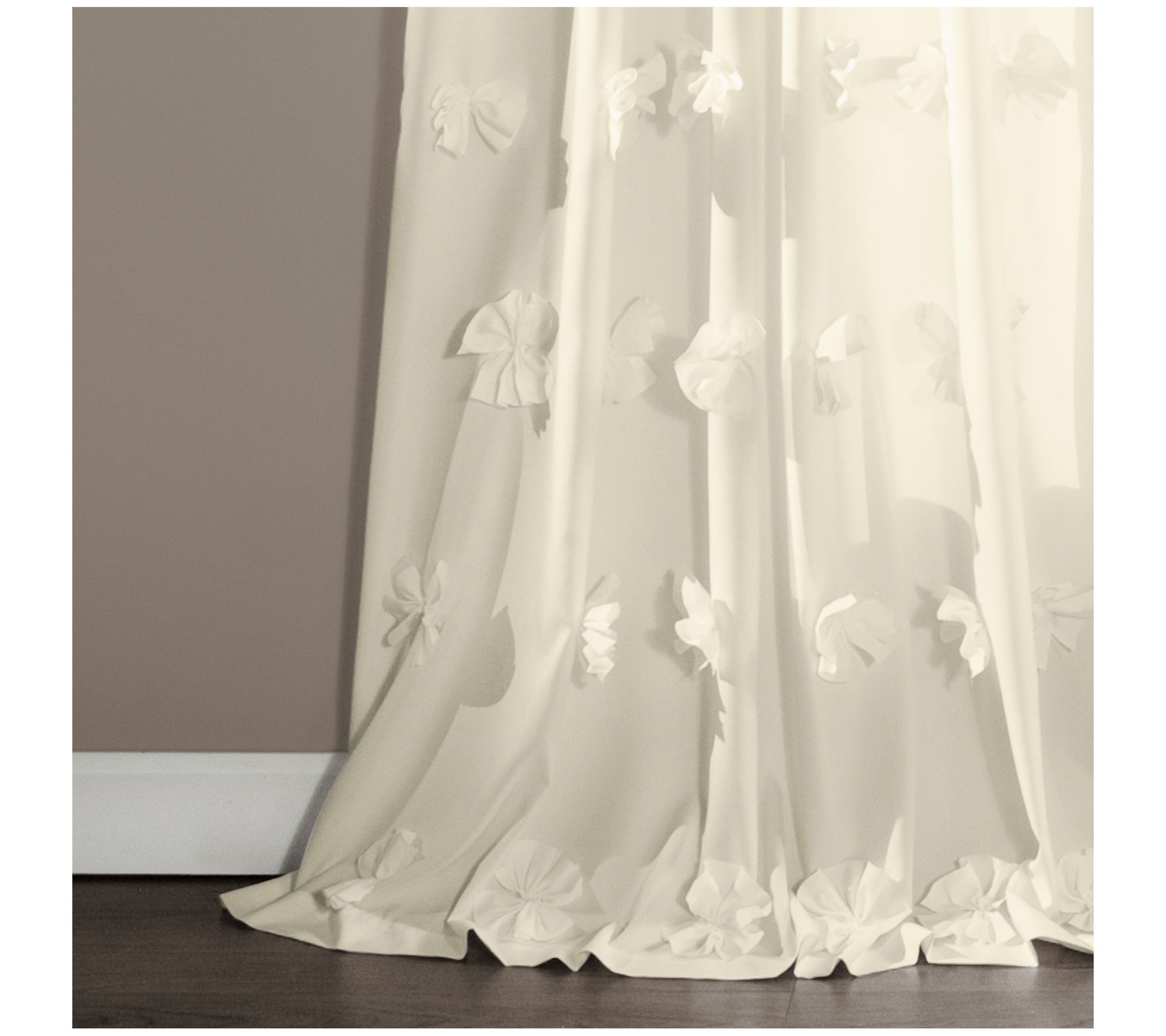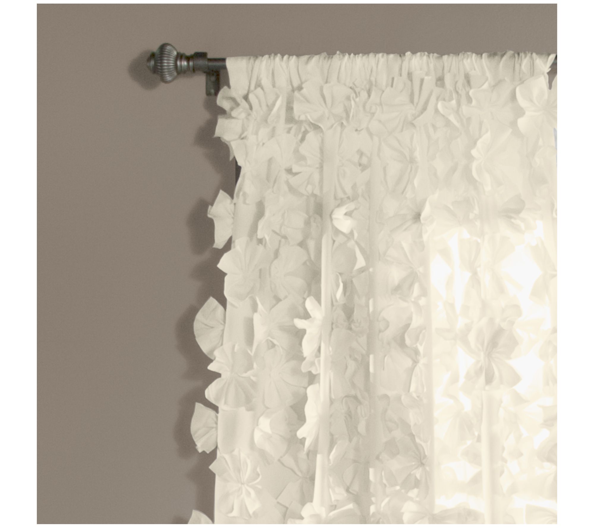 Topped with cascading, three-dimensional flowers, the Riley window panel brings graceful elegance and airy charm to any space. From Lush Decor.