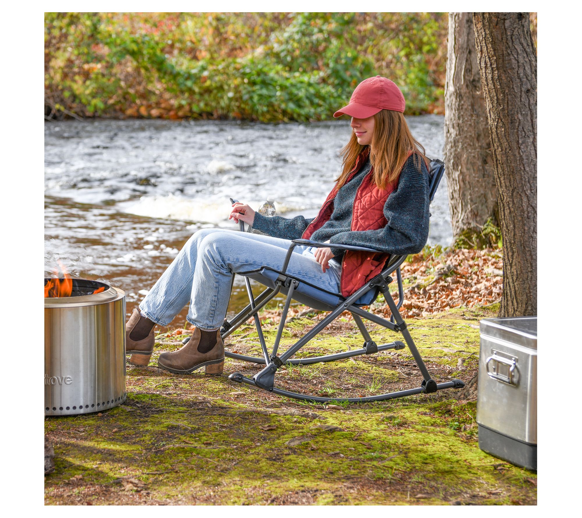 Rock out in comfort with this rocking chair boasting a sturdy, yet lightweight frame that folds neatly for easy portability. From Rio.